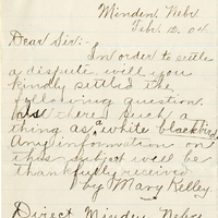 Letter, Mary Kelley to Lawrence Bruner, 1904, Feb. 12