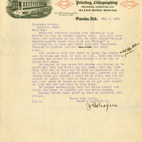 Letter, J.B. Redfield to Lawrence Bruner, 1904, May 4