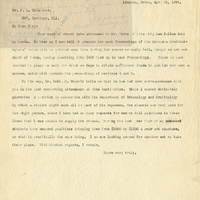 Letter, Lawrence Bruner to J.L. Sloanaker, 1904, Apr. 21