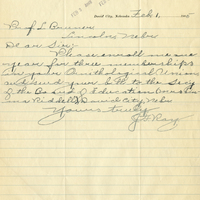 Handwritten letter, 1 page, from J.F. Ray to Lawrence Bruner, "Please enroll me…"