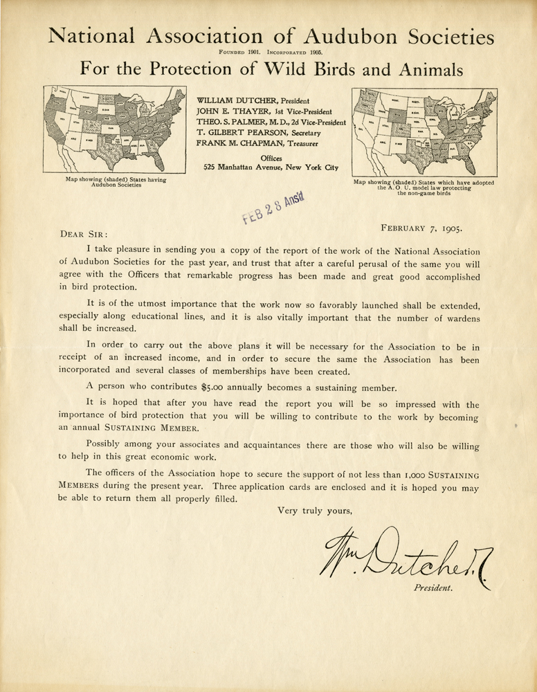 Letter, William Dutcher to Dear Sir, 1905, Feb. 7