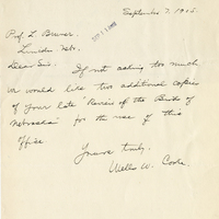 Letter, Wells W. Cooke to Lawrence Bruner, 1905, Sept. 7