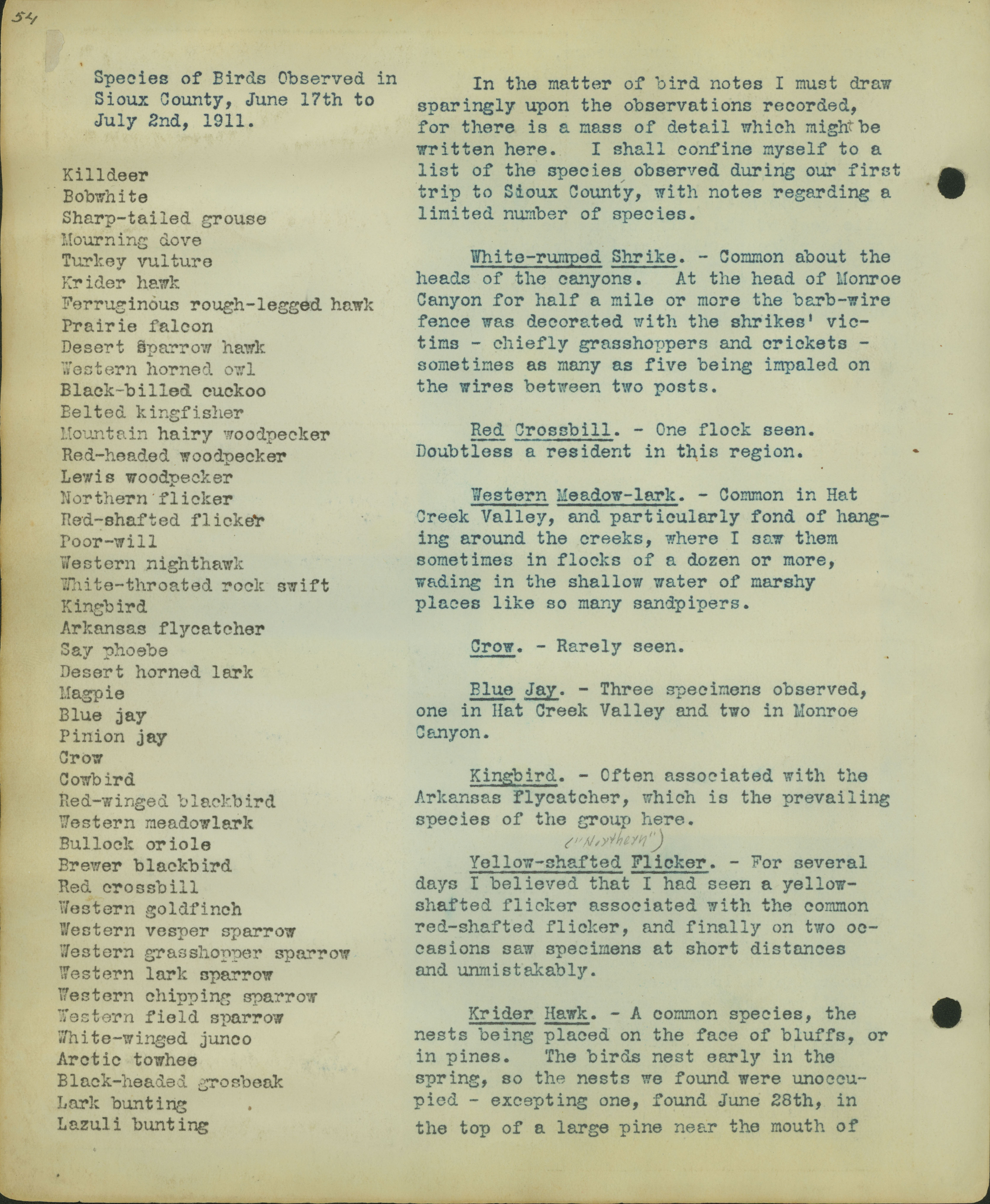 red-shafted flicker, and finally on two oe-