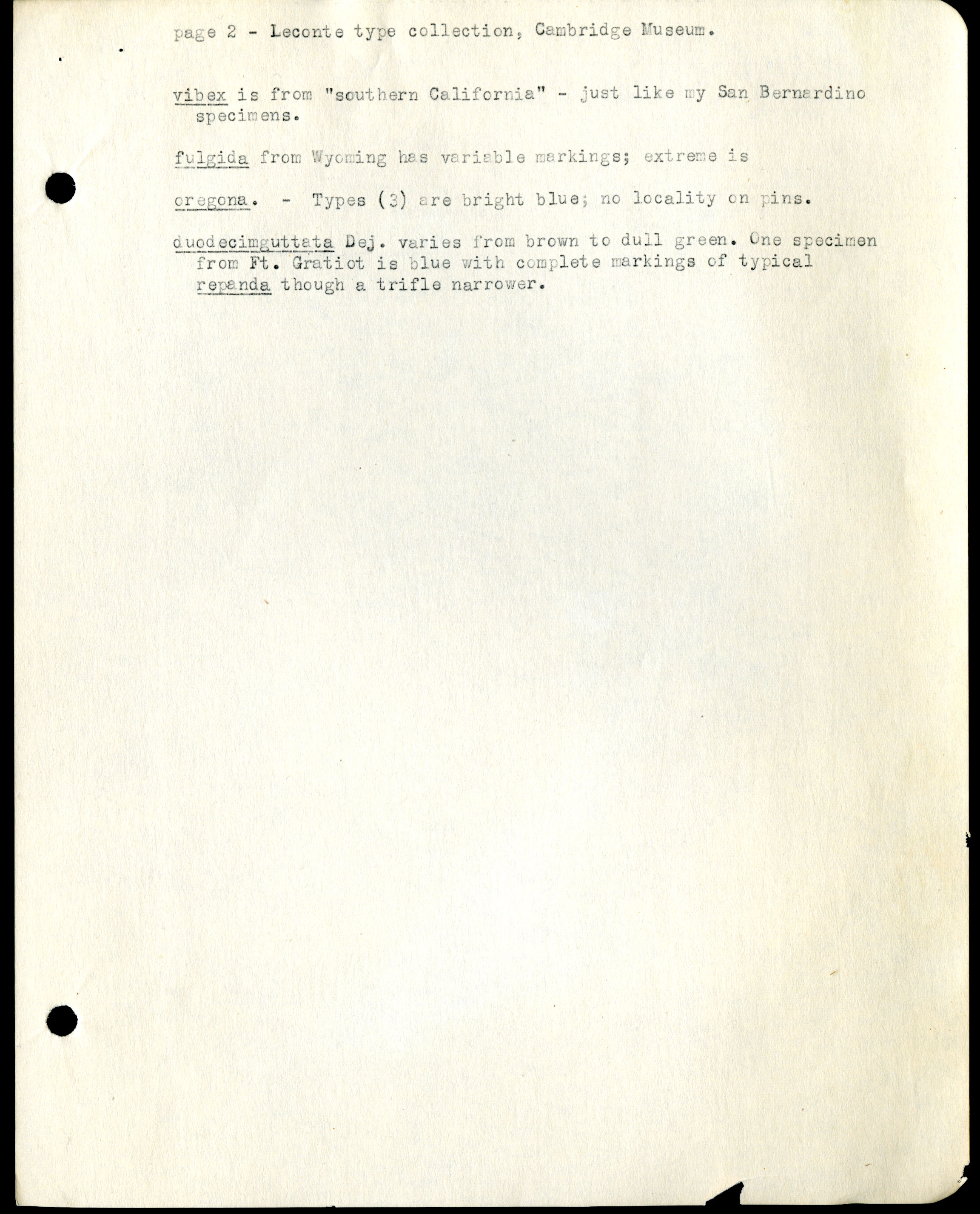 Frank H. Shoemaker typescript, 31 pages, including notes and list on CICINDELIDAE in the Carnegie Museum, Pittsburgh, PN, Nebraska, and his own collection.