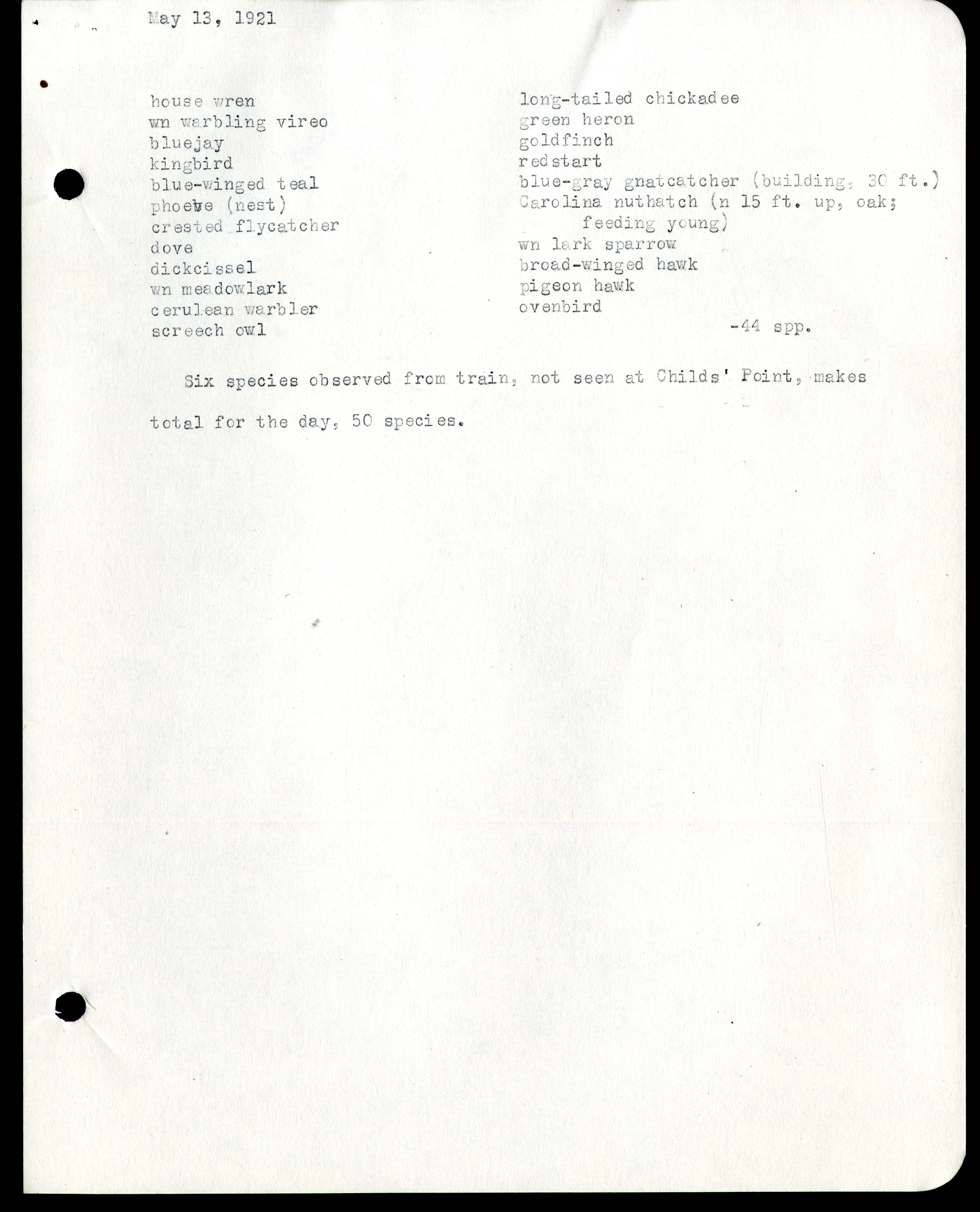 Frank H. Shoemaker typescript, 2 pages, list of birds seen from train, Lincoln, Omaha, Nebraska.