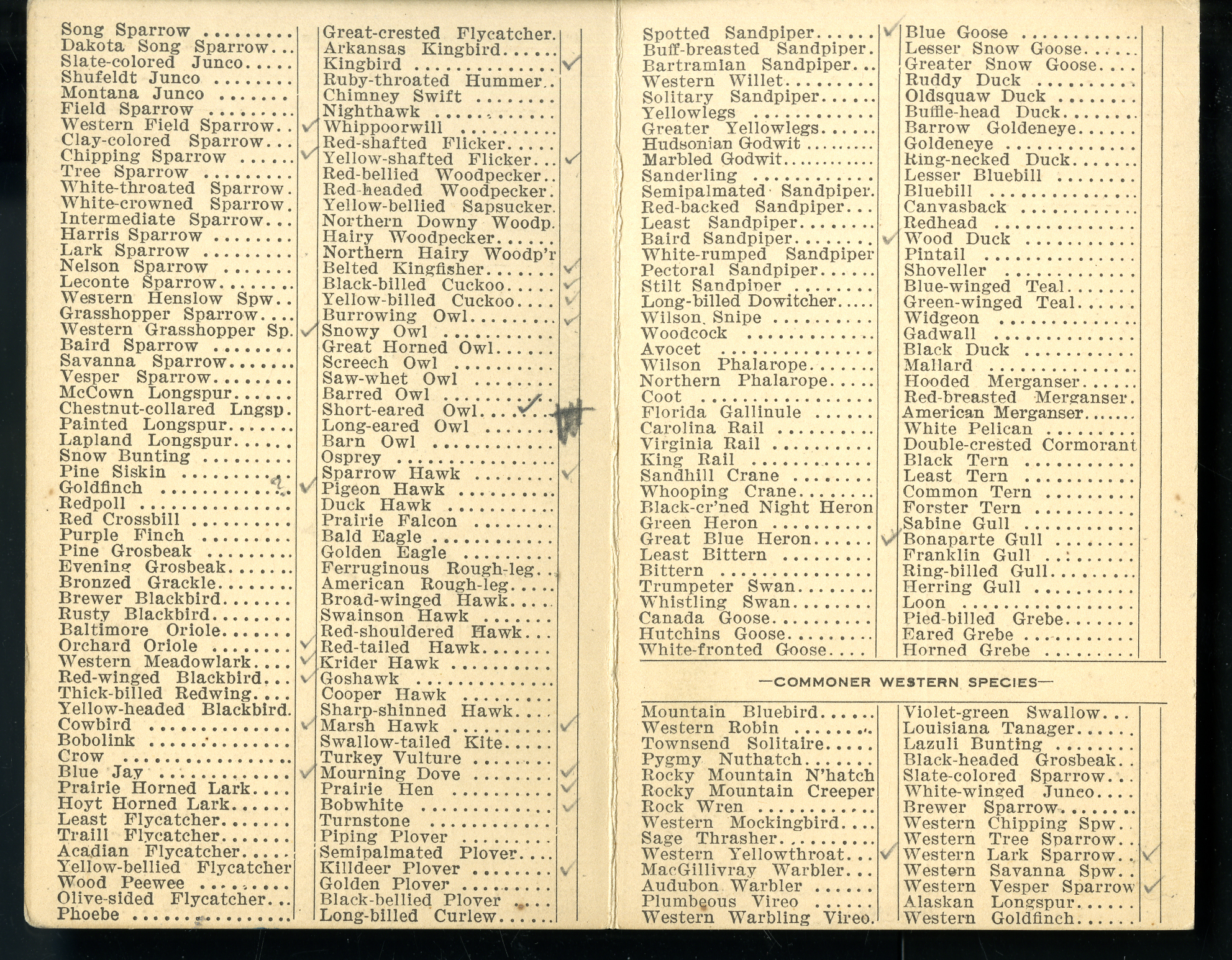 Frank H. Shoemaker bird record, sited on July 3-13, 1911, in Thomas Couny, Nebraska, and recorded on the "Field Check List of Nebraska Birds."
