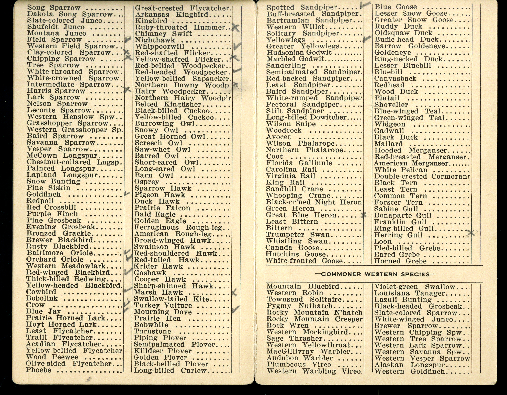 Frank H. Shoemaker bird record, sited on May 12, 1928 and recorded on the "Field Check List of Nebraska Birds."