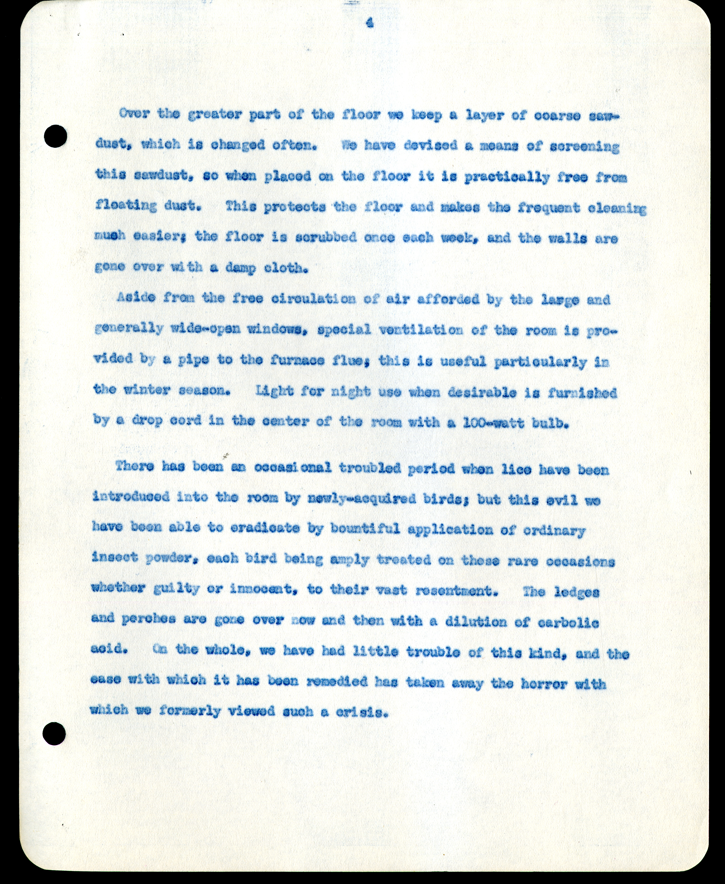 Frank H. Shoemaker typescript narrative, 29 pages, on the bird room in Omaha home, with details on bird and insects.
