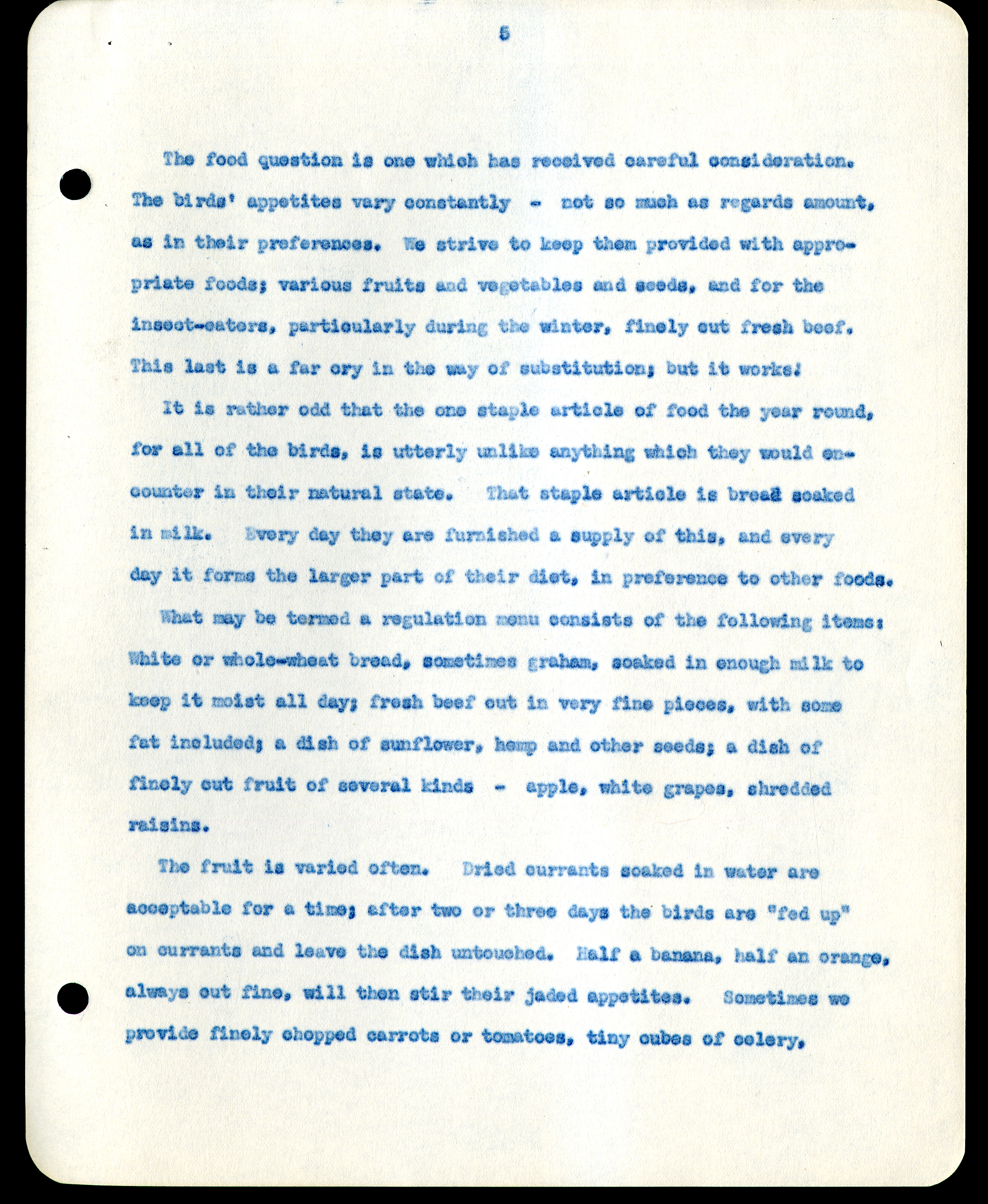 Frank H. Shoemaker typescript narrative, 29 pages, on the bird room in Omaha home, with details on bird and insects.