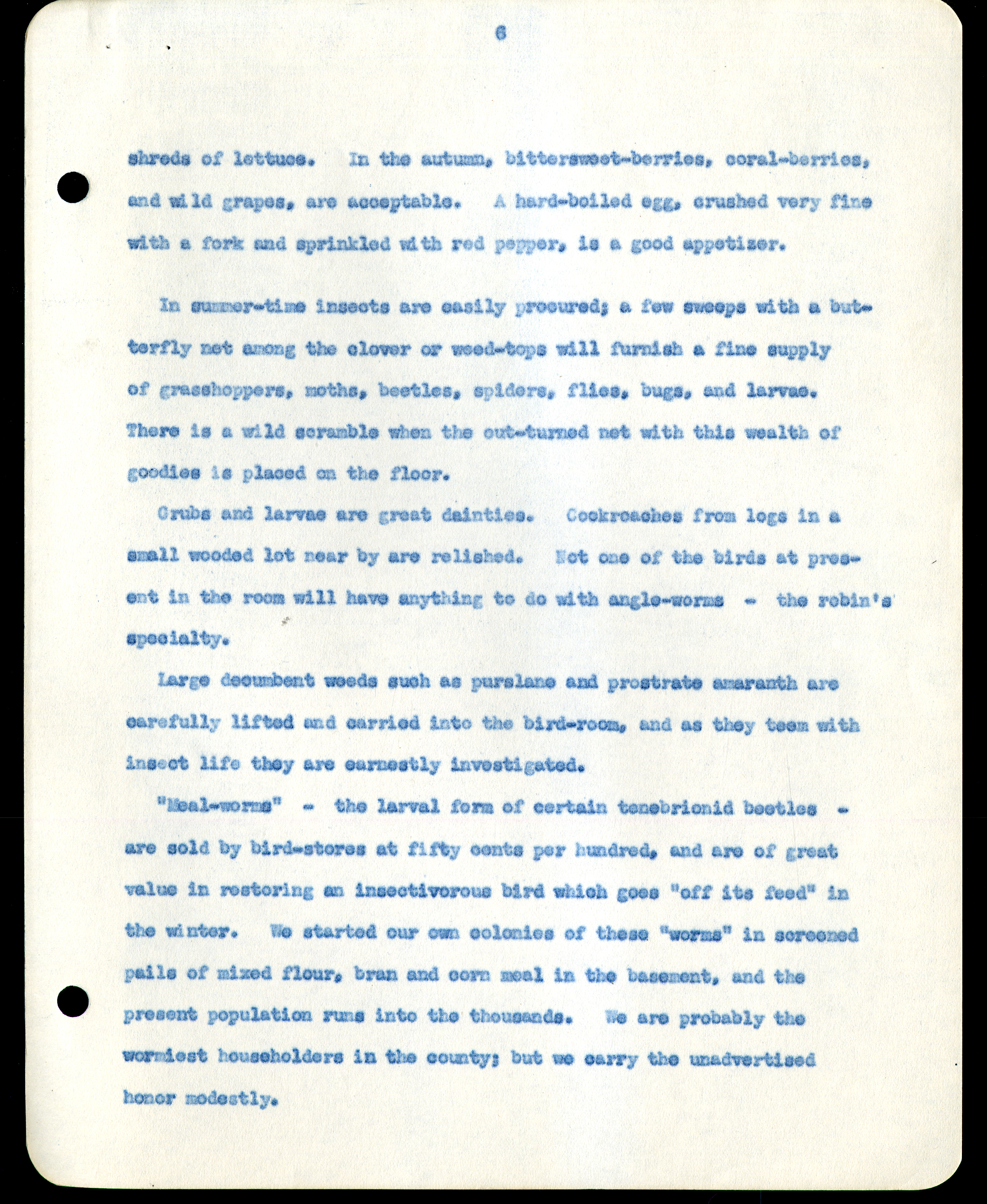 Frank H. Shoemaker typescript narrative, 29 pages, on the bird room in Omaha home, with details on bird and insects.
