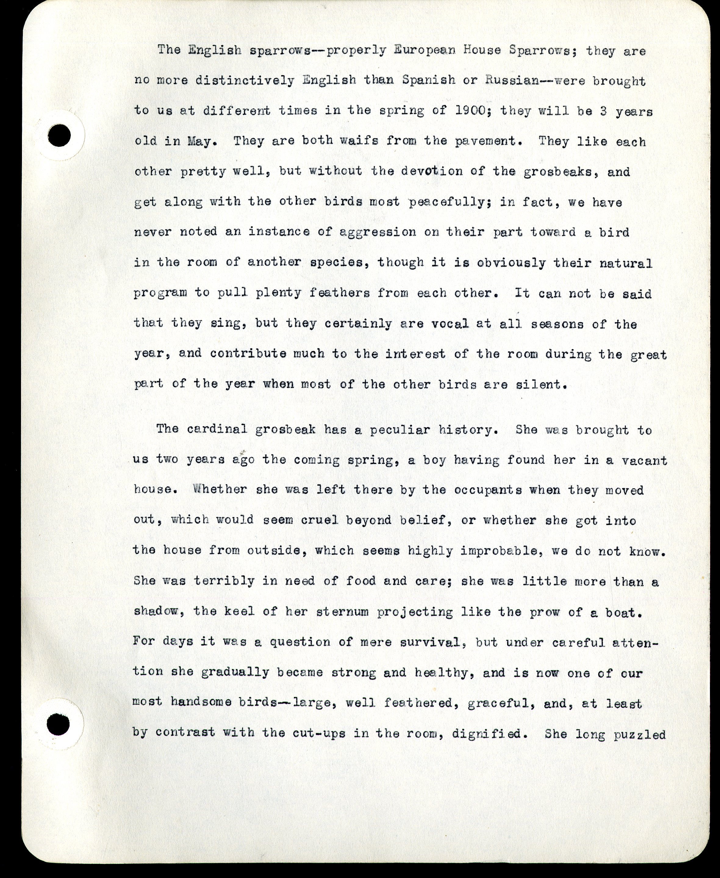 Frank H. Shoemaker typescript narrative, 29 pages, on the bird room in Omaha home, with details on bird and insects.