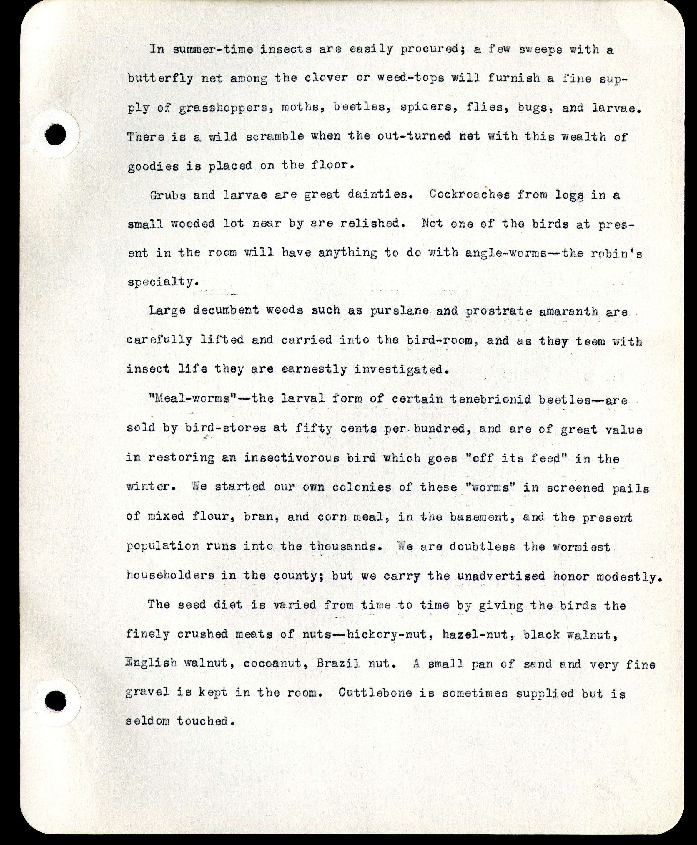 Frank H. Shoemaker typescript narrative, 29 pages, on the bird room in Omaha home, with details on bird and insects.