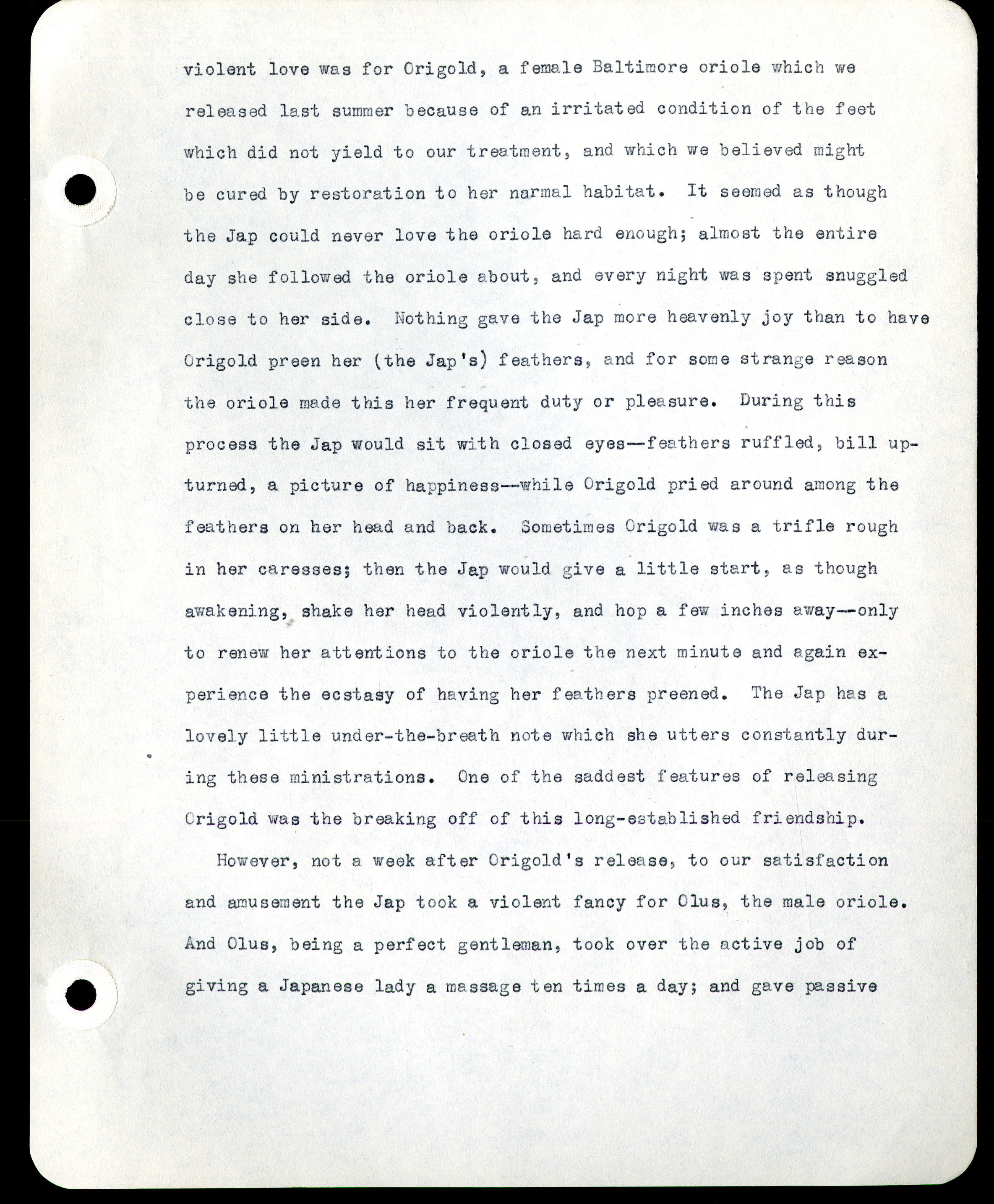 Frank H. Shoemaker typescript narrative, 29 pages, on the bird room in Omaha home, with details on bird and insects.