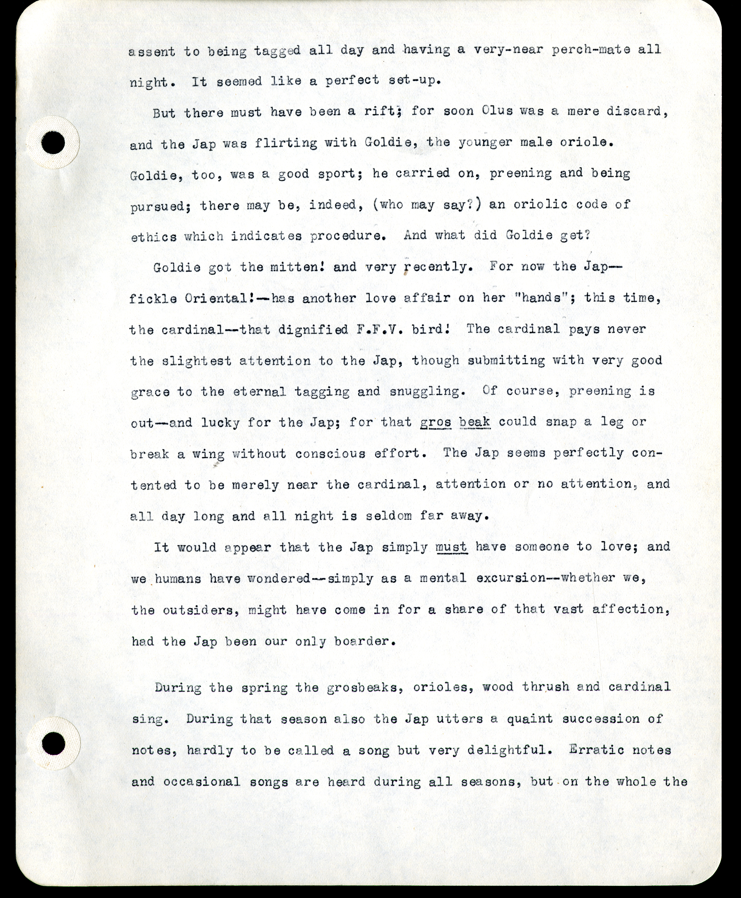 Frank H. Shoemaker typescript narrative, 29 pages, on the bird room in Omaha home, with details on bird and insects.