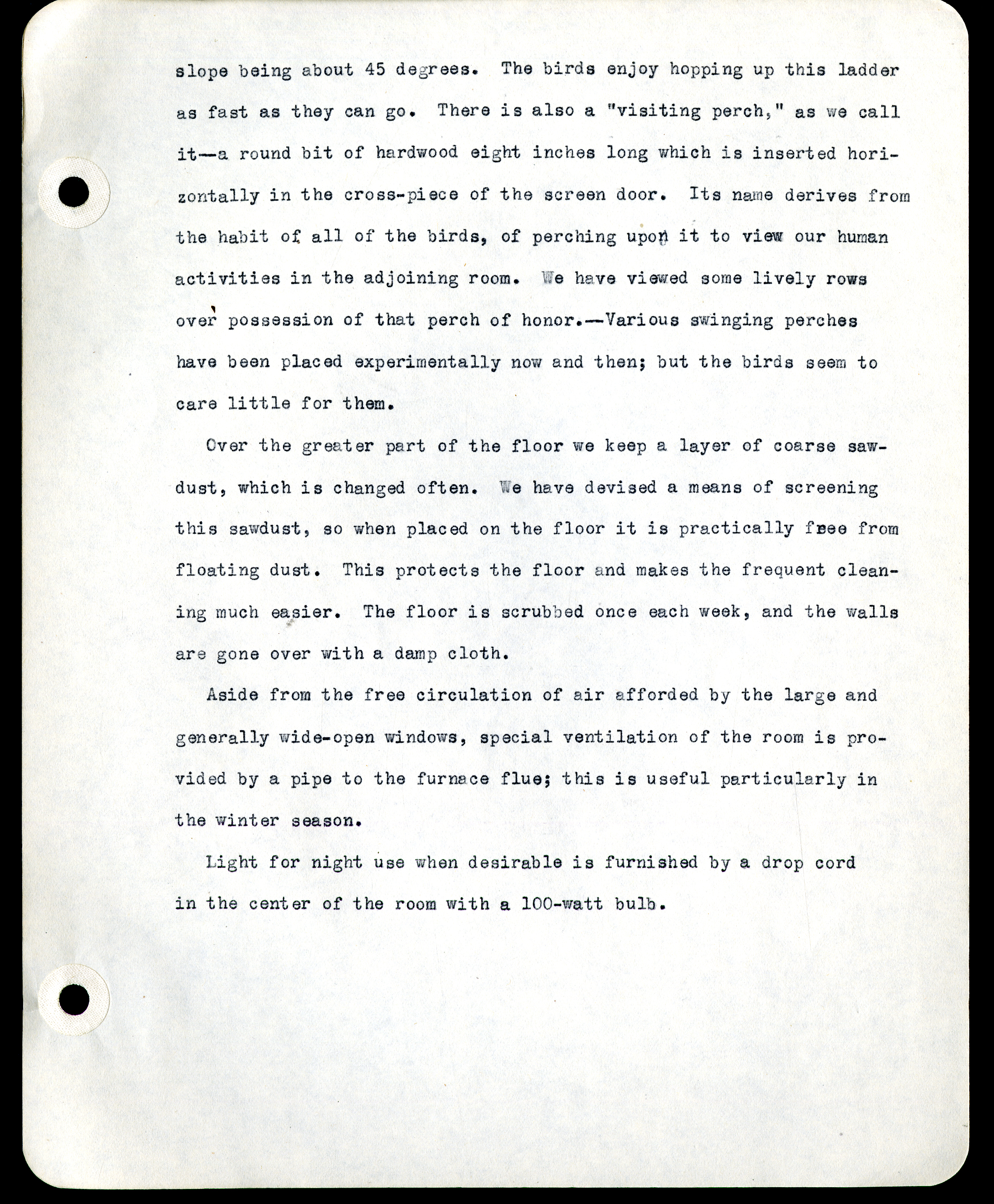 Frank H. Shoemaker typescript narrative, 29 pages, on the bird room in Omaha home, with details on bird and insects.