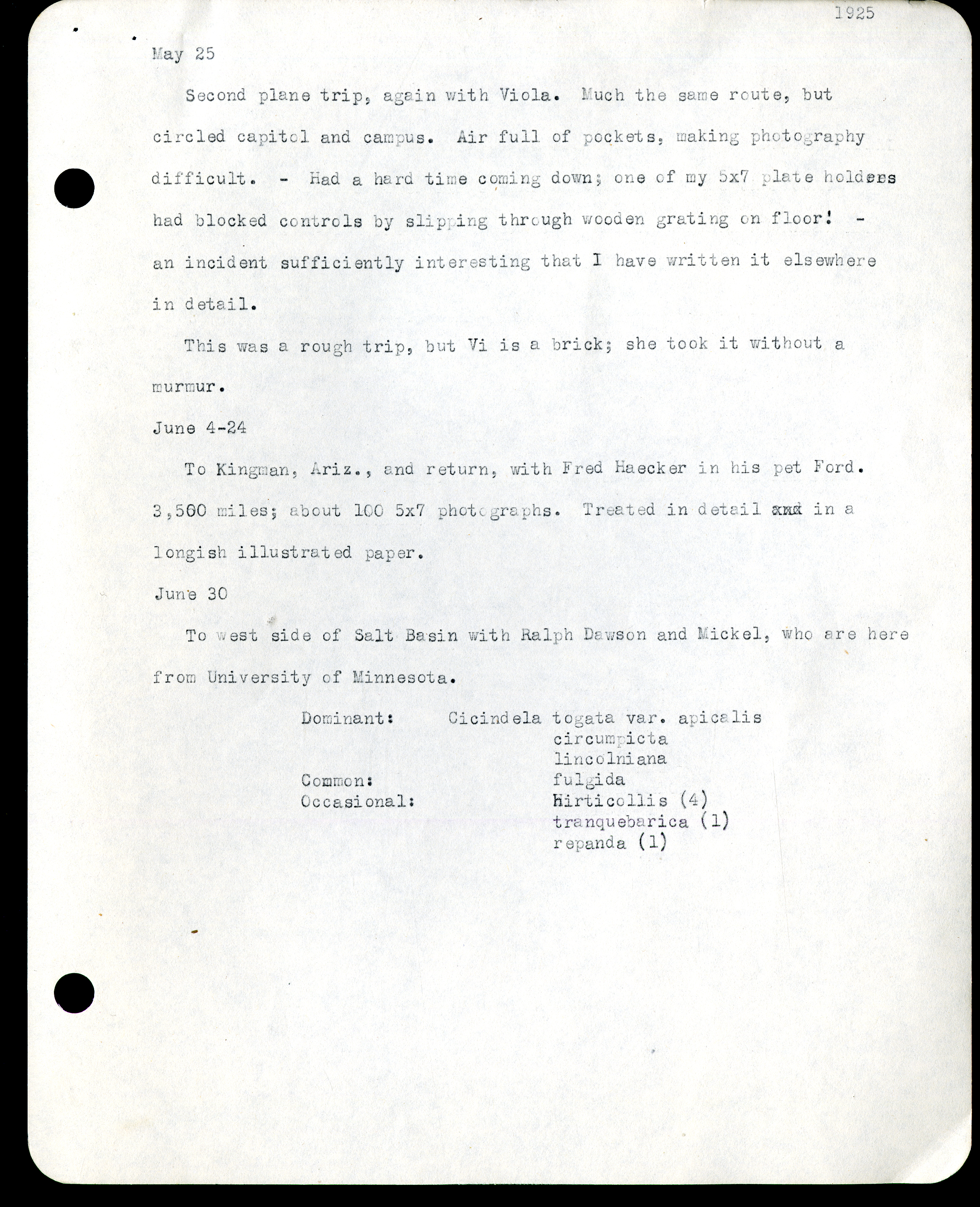 Frank H. Shoemaker typescript, 3 pages, on Woodlawn Cemetary and Branson Woods, including biplane trip over Lincoln, Nebraska.