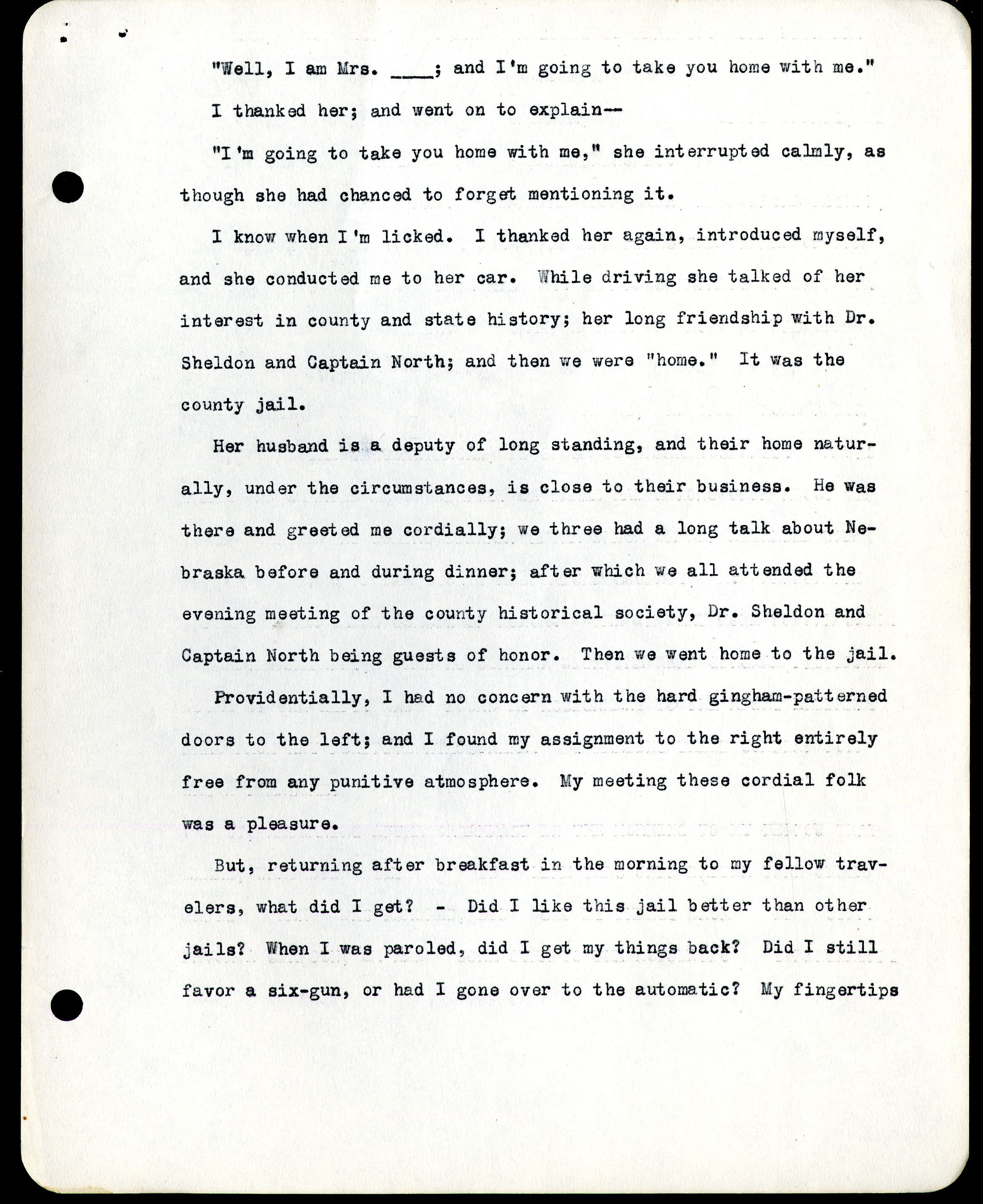 Frank H. Shoemaker typescript, 4 pages, on trip as photographer with Addison E. Sheldon, along with notes from Captain Luthor North's travel diary.