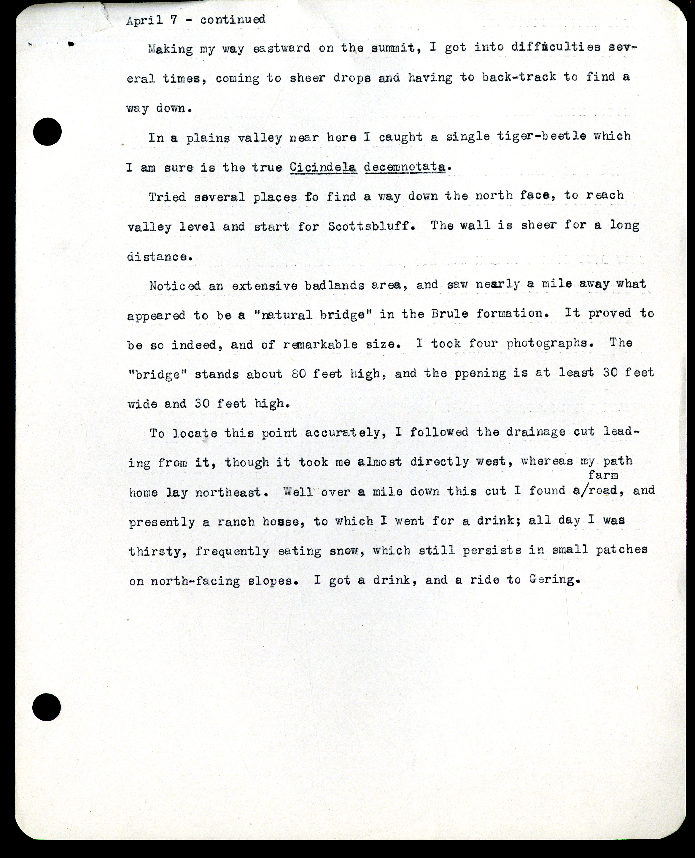 Frank H. Shoemaker typescript, 9 pages, on Wildcat Range and owls, fossils, and lantern slides.