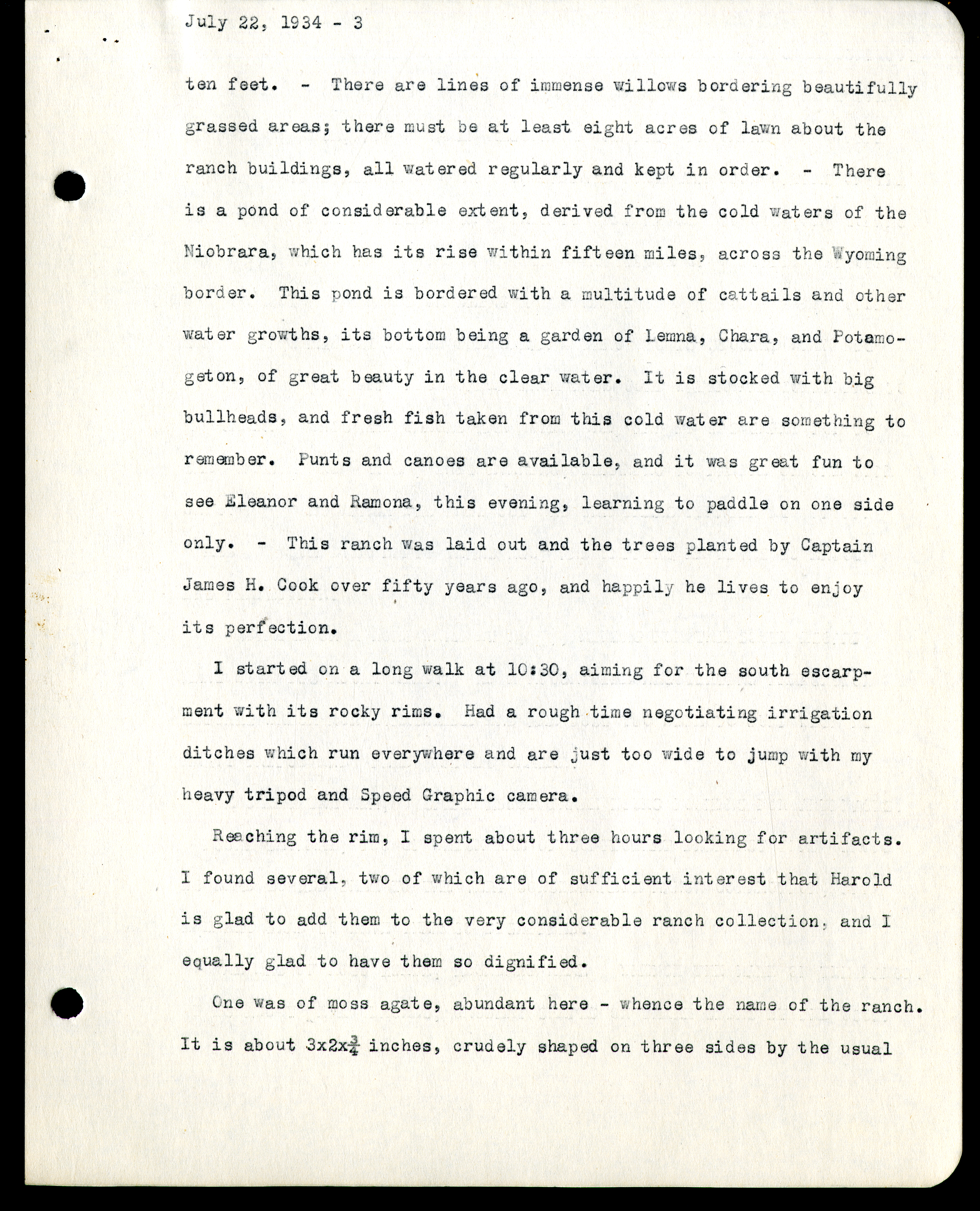 Frank H. Shoemaker typescript, 8 pages, on trip to Agate Springs Ranch with bird list.