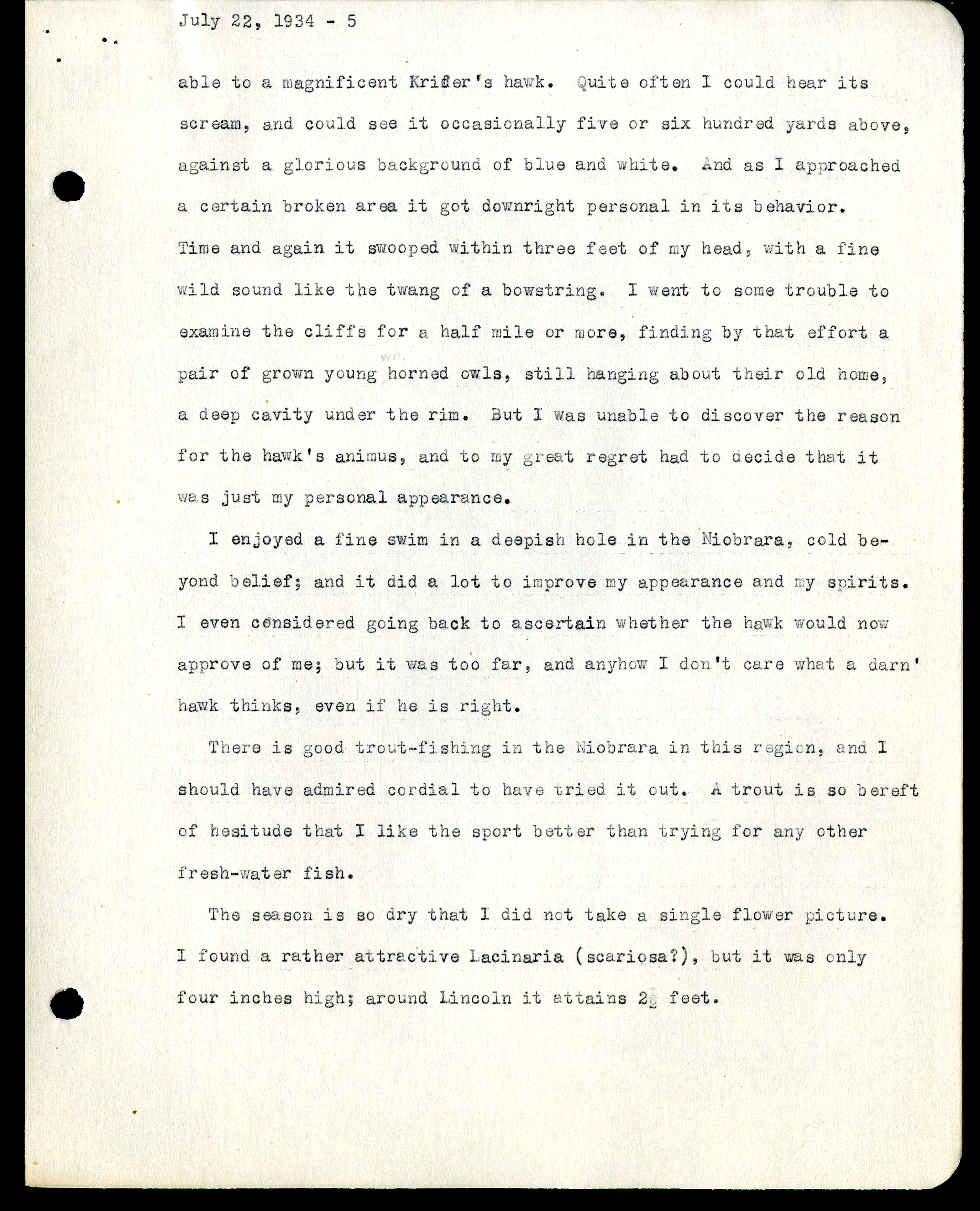 Frank H. Shoemaker typescript, 8 pages, on trip to Agate Springs Ranch with bird list.