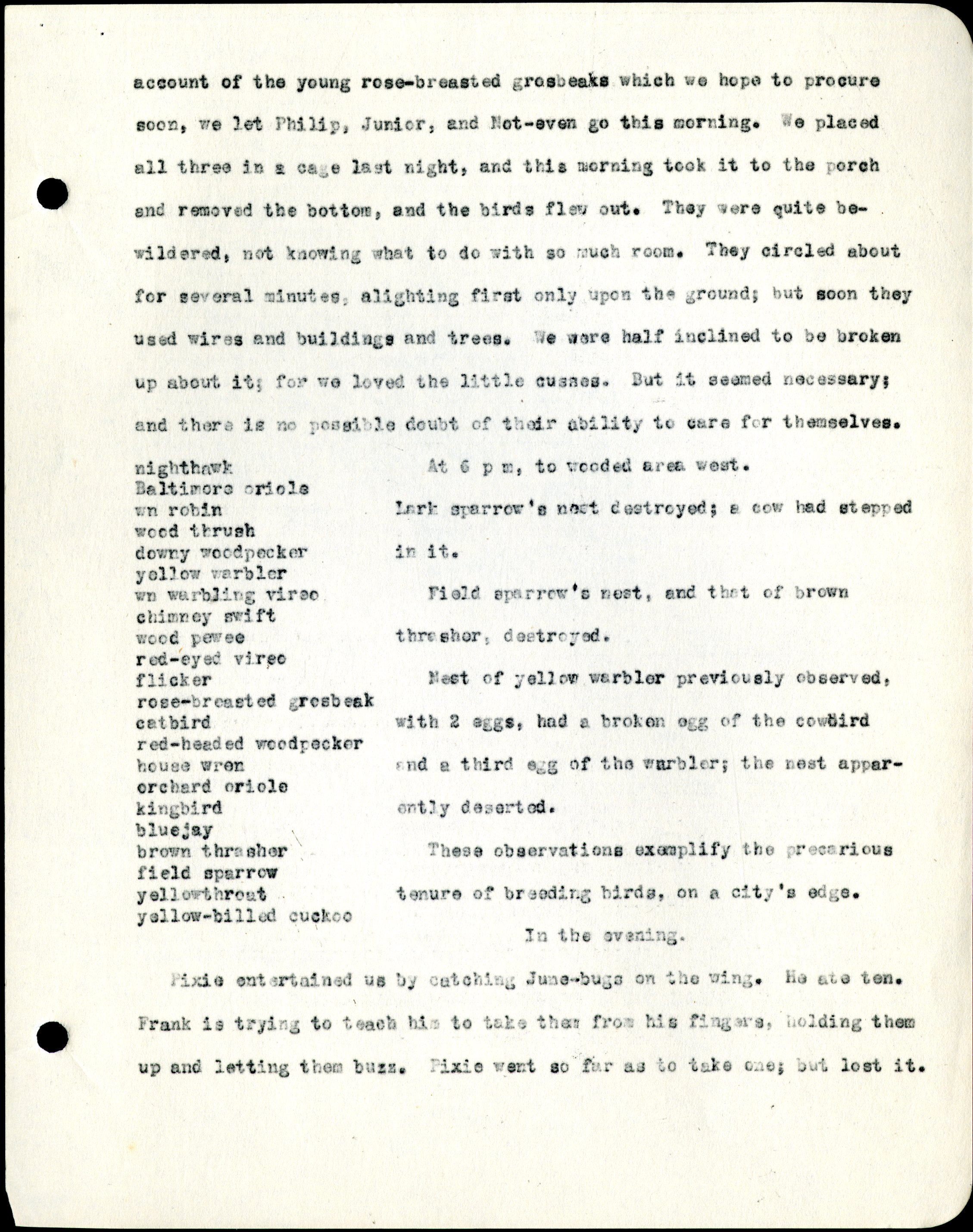 Frank H. Shoemaker typescript, 8 pages, detailing bird sightings, field trips, photography, and associated activities in Omaha, Nebraska.