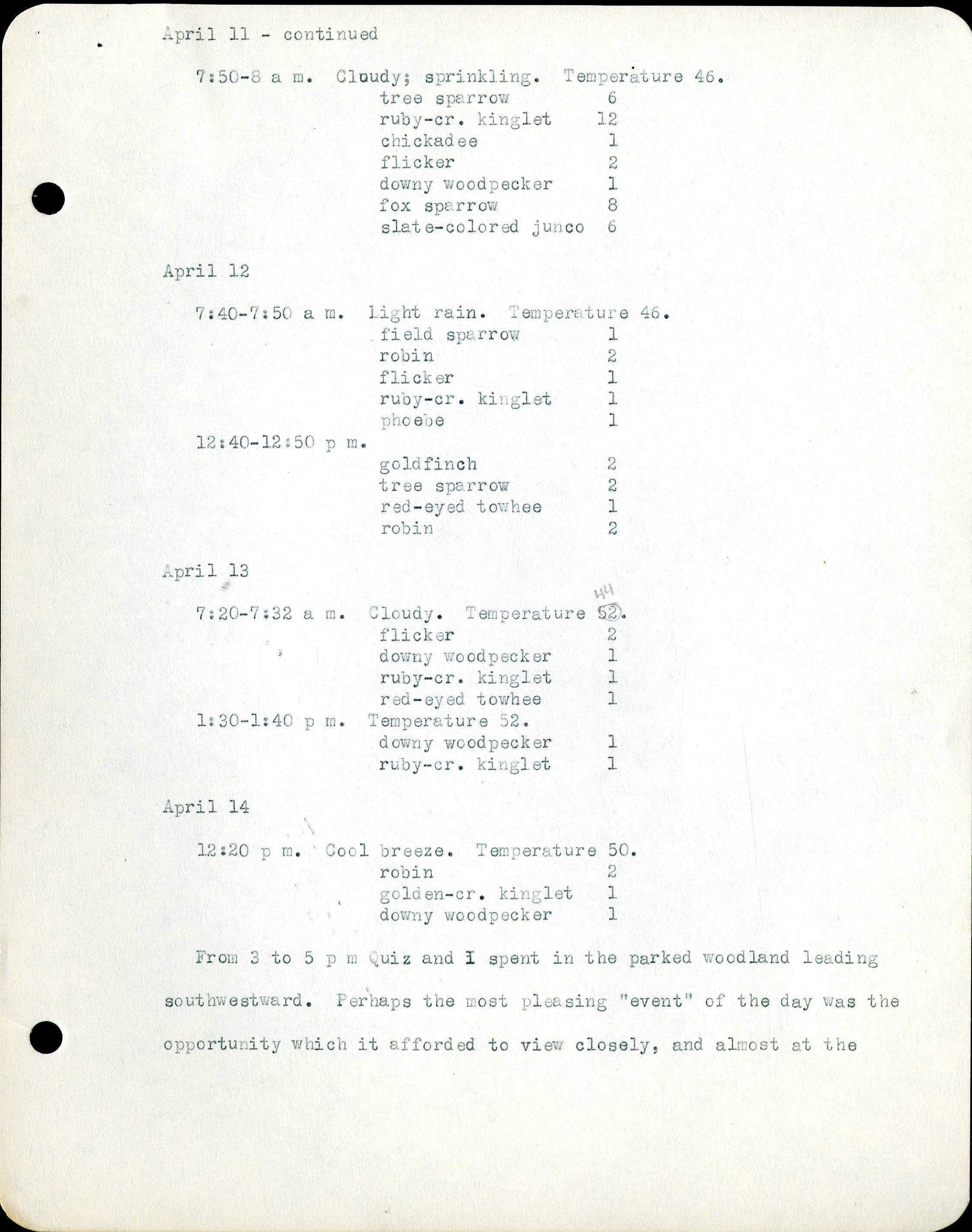 Frank H. Shoemaker typescript, 11 pages, on birds living in bird room in Omaha home with a list of birds in general Omaha region.