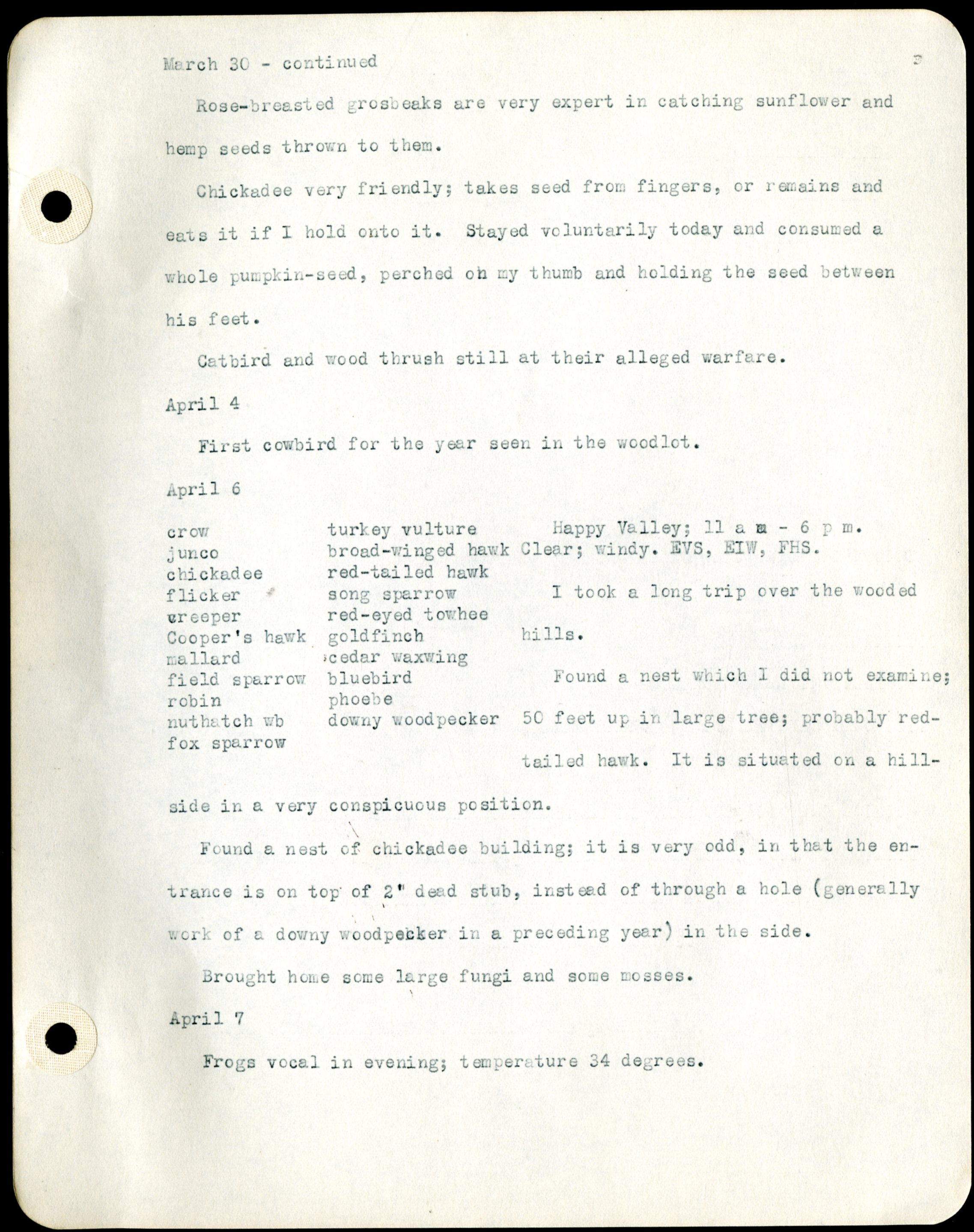 Frank H. Shoemaker typescript, 46 pages, detailing bird sightings, field trips, photography, and associated activities in Omaha, Nebraska.
