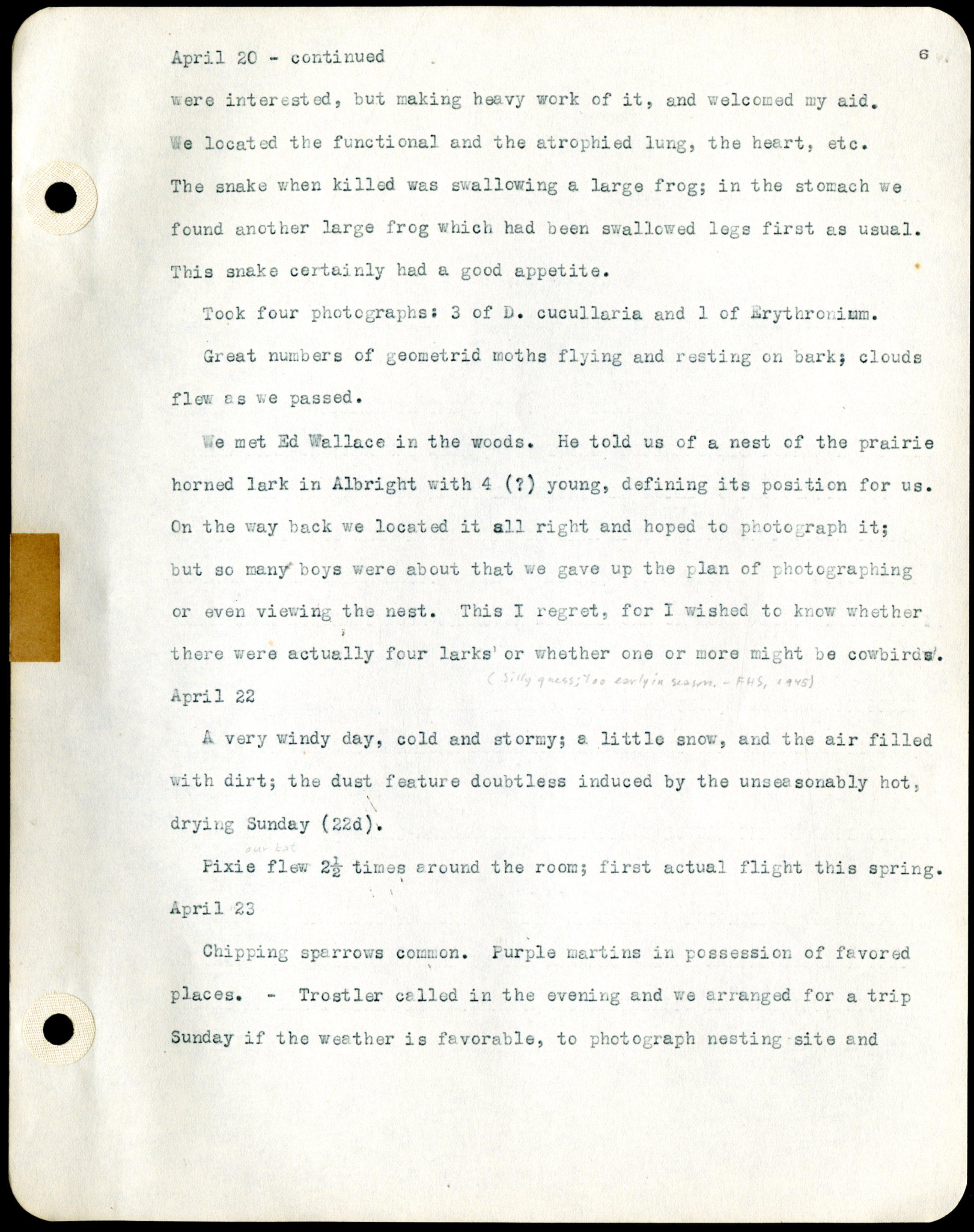 Frank H. Shoemaker typescript, 46 pages, detailing bird sightings, field trips, photography, and associated activities in Omaha, Nebraska.