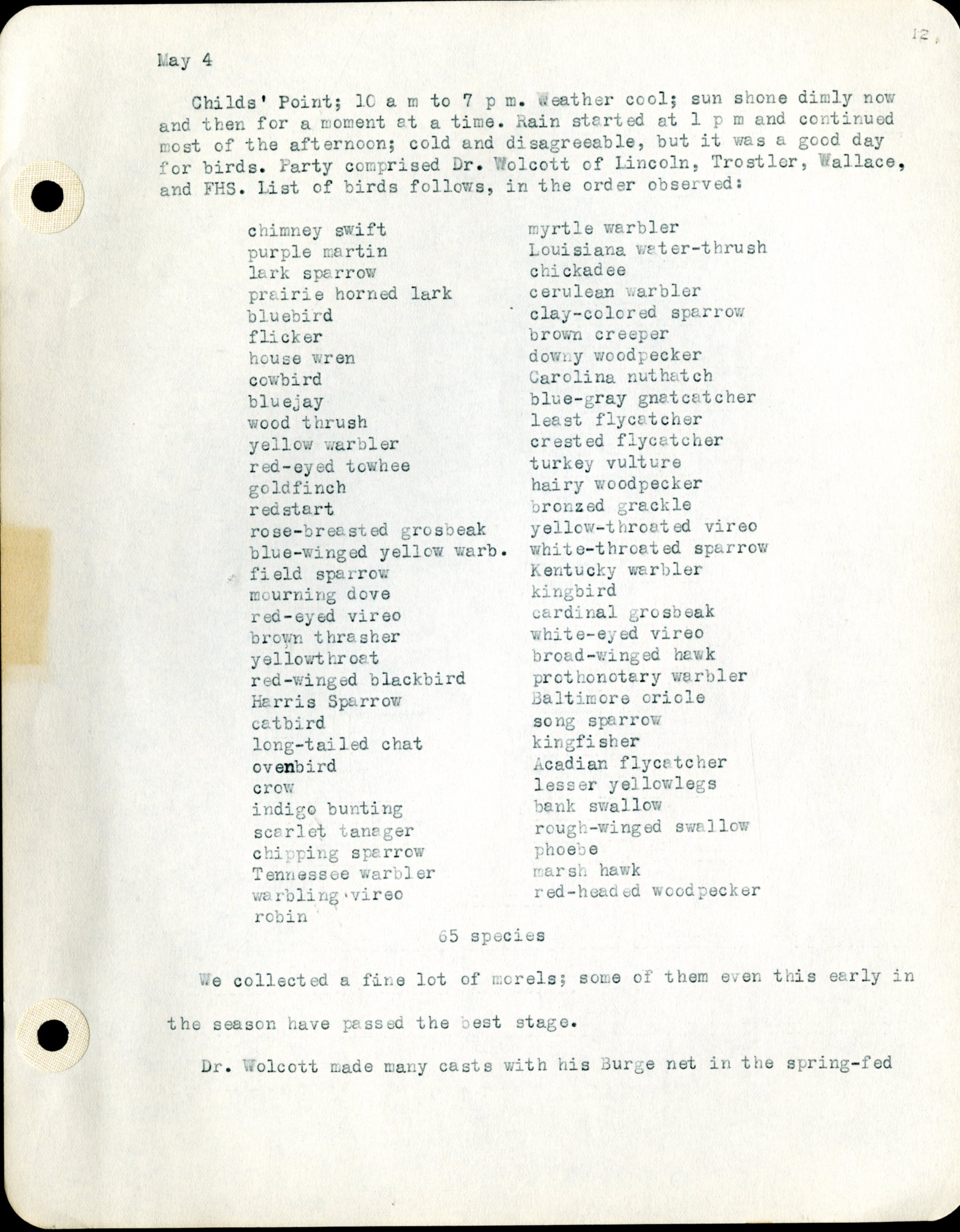 Frank H. Shoemaker typescript, 46 pages, detailing bird sightings, field trips, photography, and associated activities in Omaha, Nebraska.