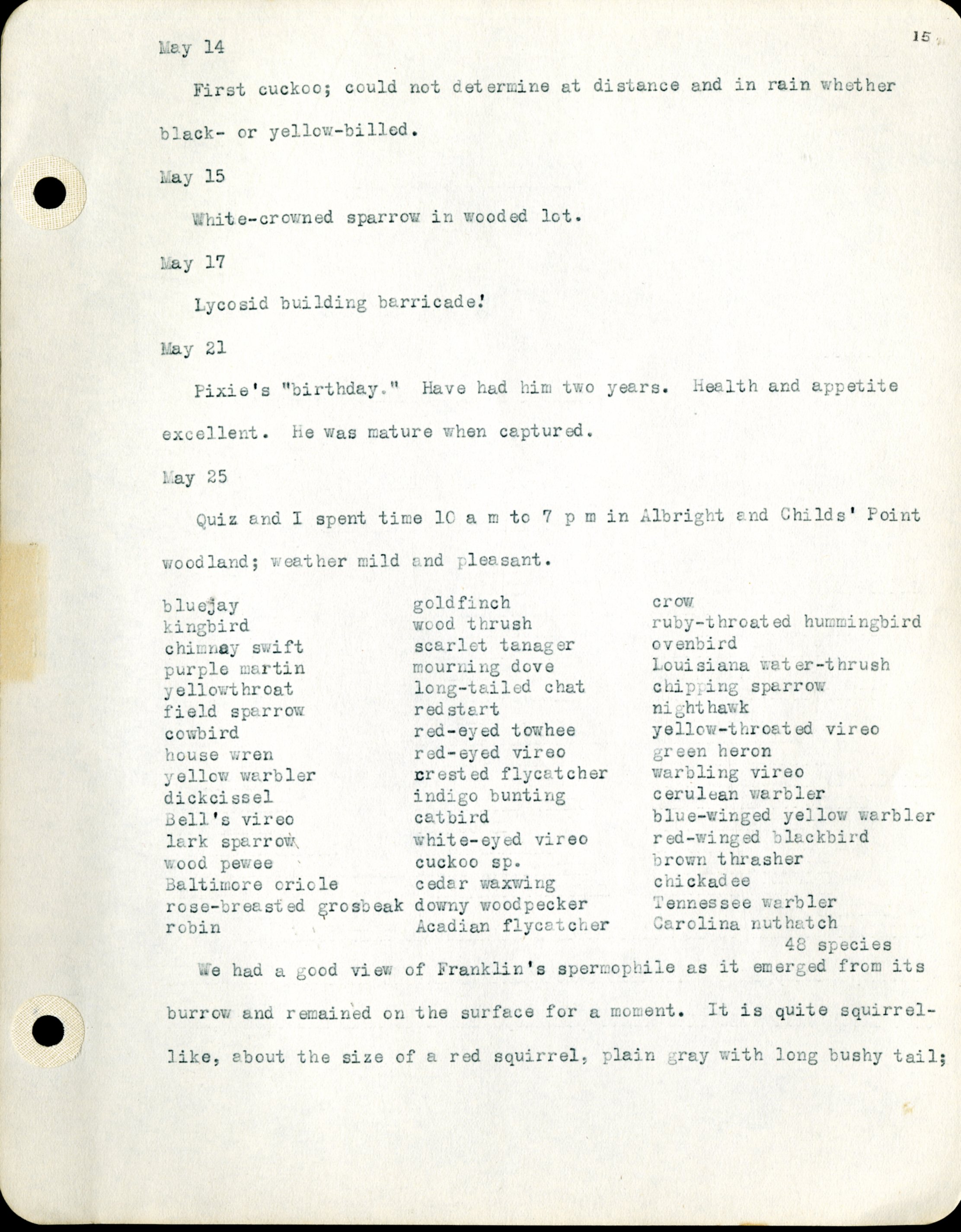 Frank H. Shoemaker typescript, 46 pages, detailing bird sightings, field trips, photography, and associated activities in Omaha, Nebraska.
