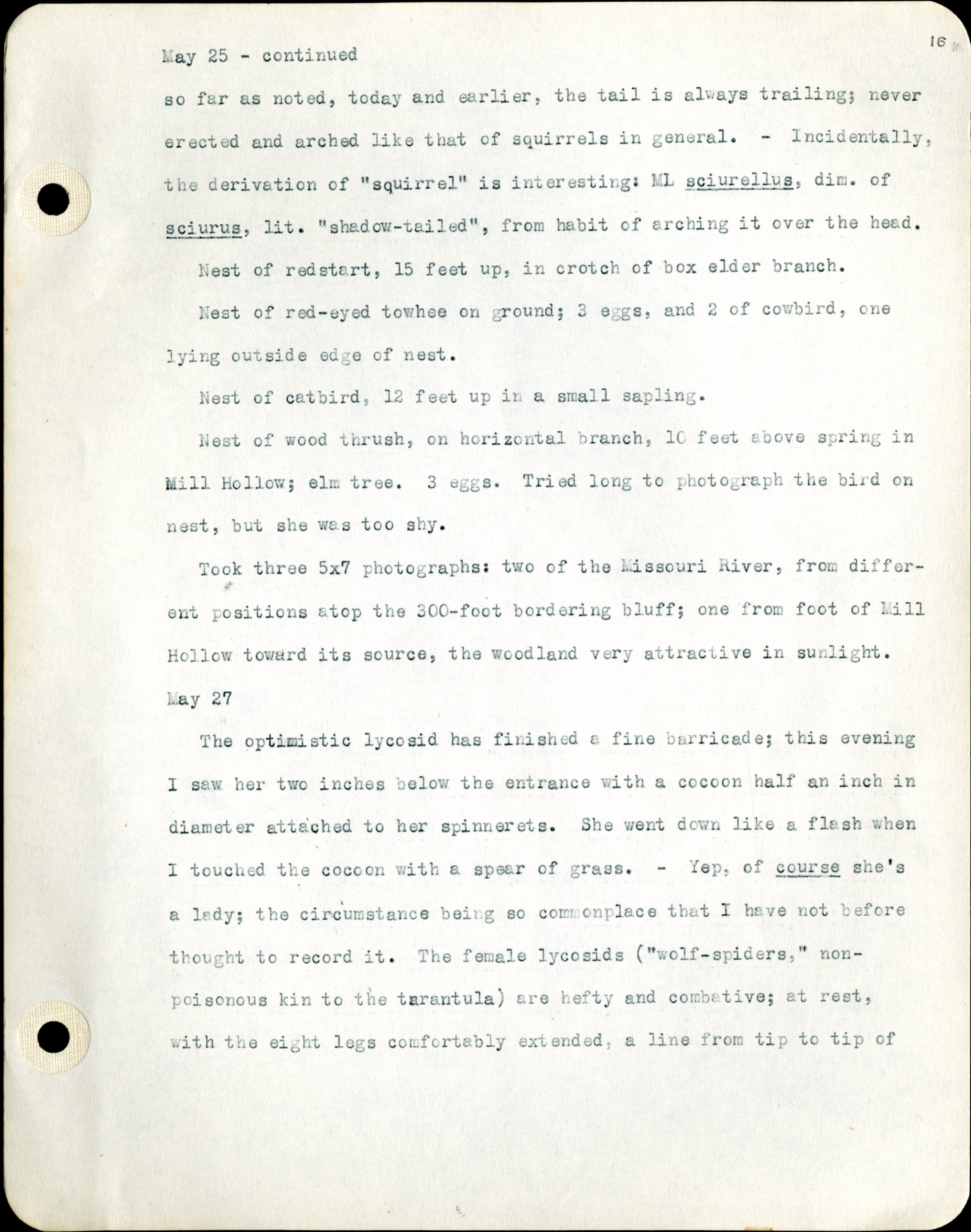 Frank H. Shoemaker typescript, 46 pages, detailing bird sightings, field trips, photography, and associated activities in Omaha, Nebraska.