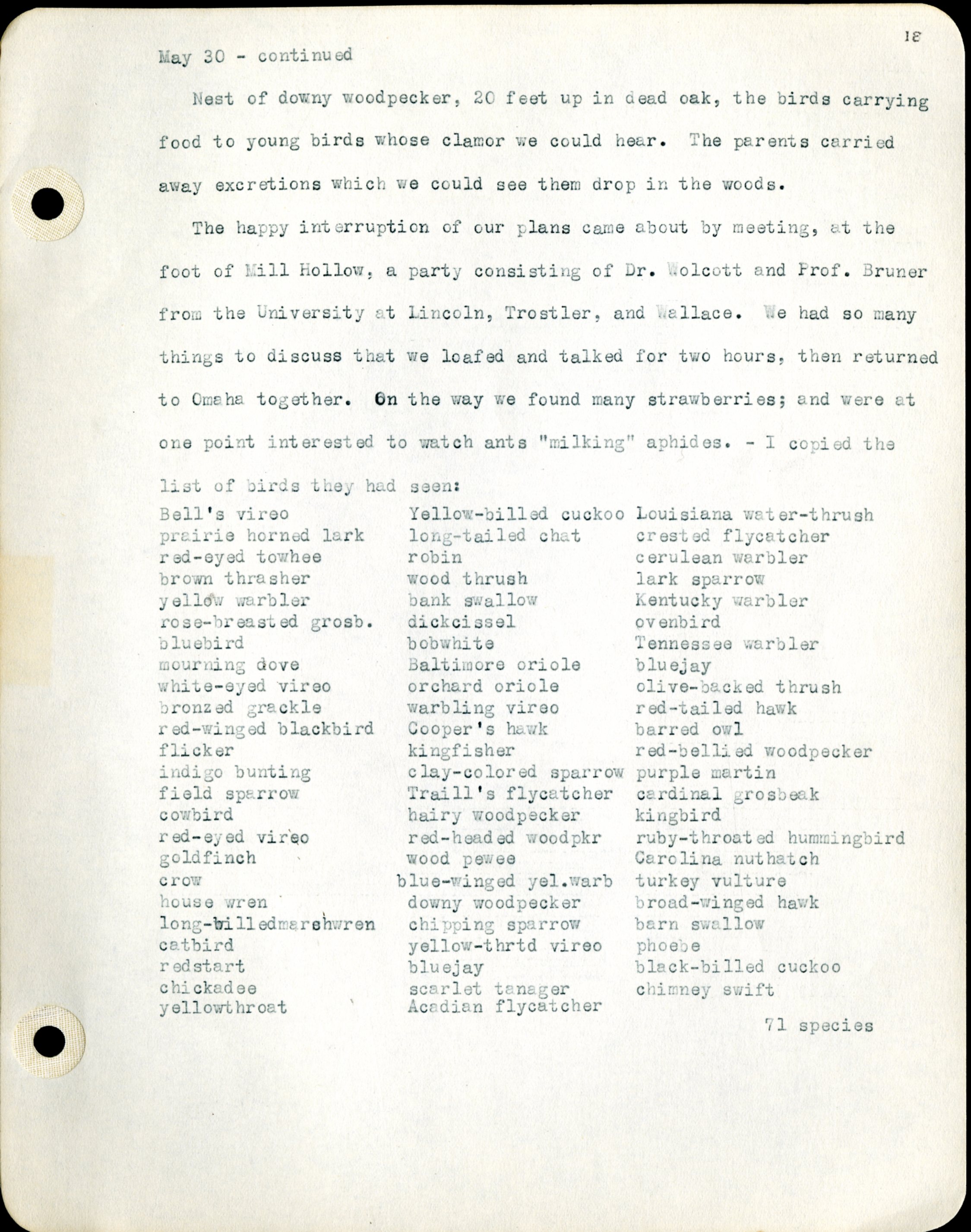 Frank H. Shoemaker typescript, 46 pages, detailing bird sightings, field trips, photography, and associated activities in Omaha, Nebraska.