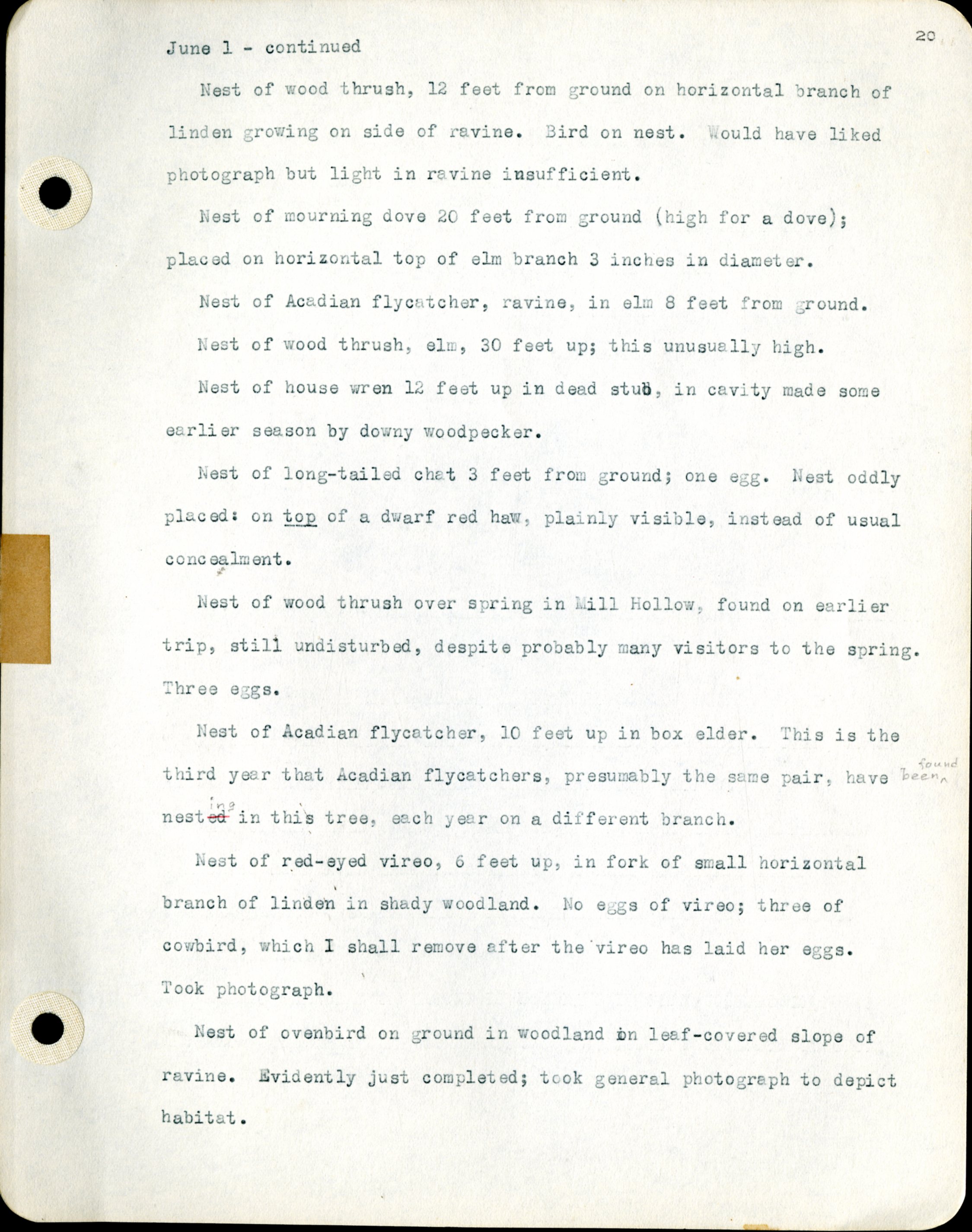 Frank H. Shoemaker typescript, 46 pages, detailing bird sightings, field trips, photography, and associated activities in Omaha, Nebraska.
