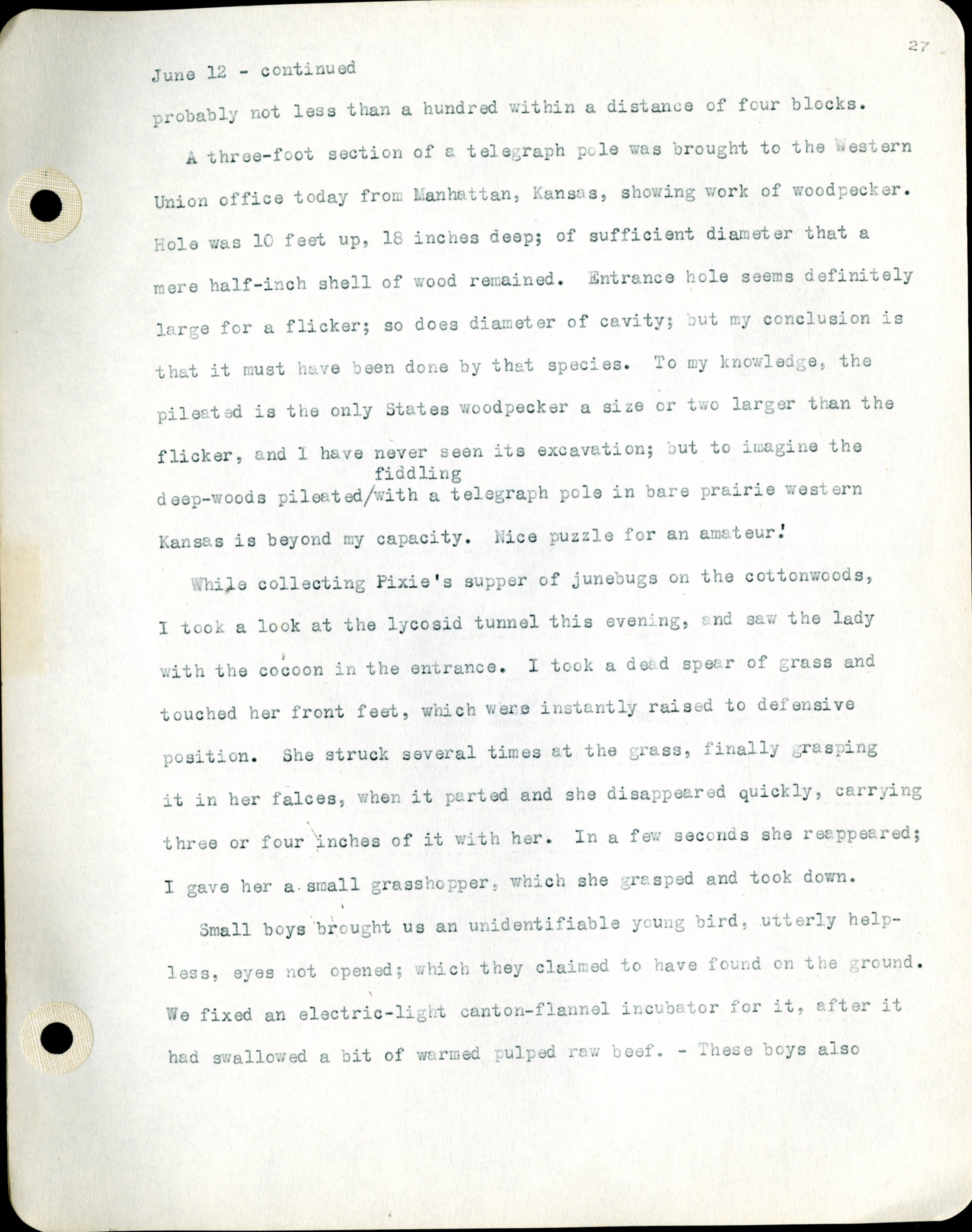 Frank H. Shoemaker typescript, 46 pages, detailing bird sightings, field trips, photography, and associated activities in Omaha, Nebraska.