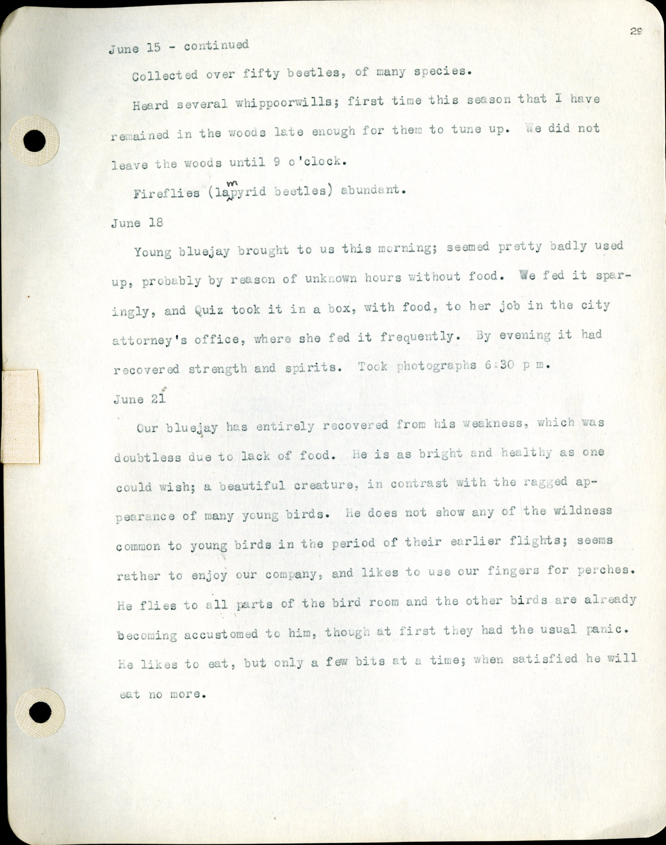 Frank H. Shoemaker typescript, 46 pages, detailing bird sightings, field trips, photography, and associated activities in Omaha, Nebraska.
