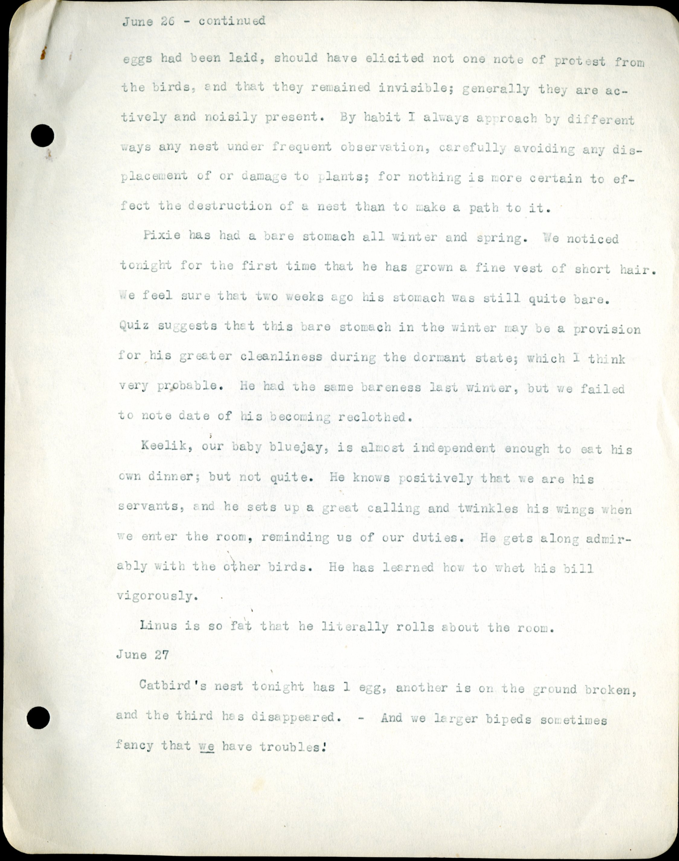 Frank H. Shoemaker typescript, 46 pages, detailing bird sightings, field trips, photography, and associated activities in Omaha, Nebraska.