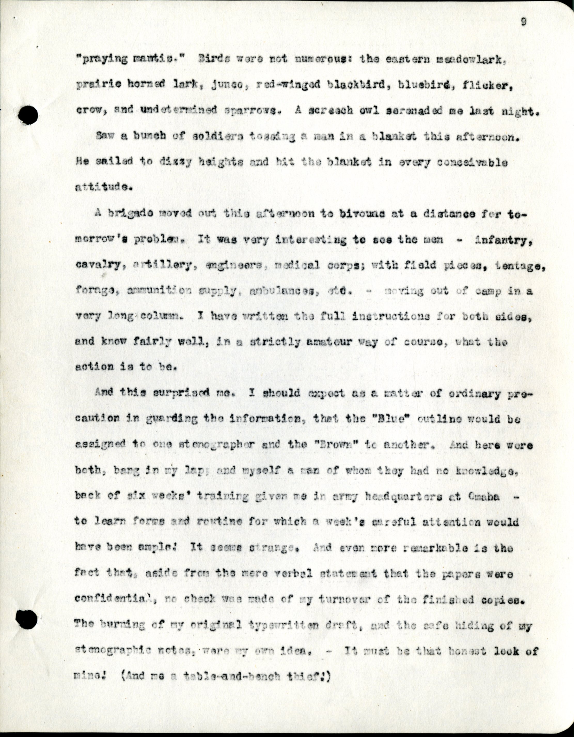 Frank H. Shoemaker typescript, 28 pages, titled "At Fort Riley, Kansas" on activities at Fort Riley between Oct. 12-29, 1903.