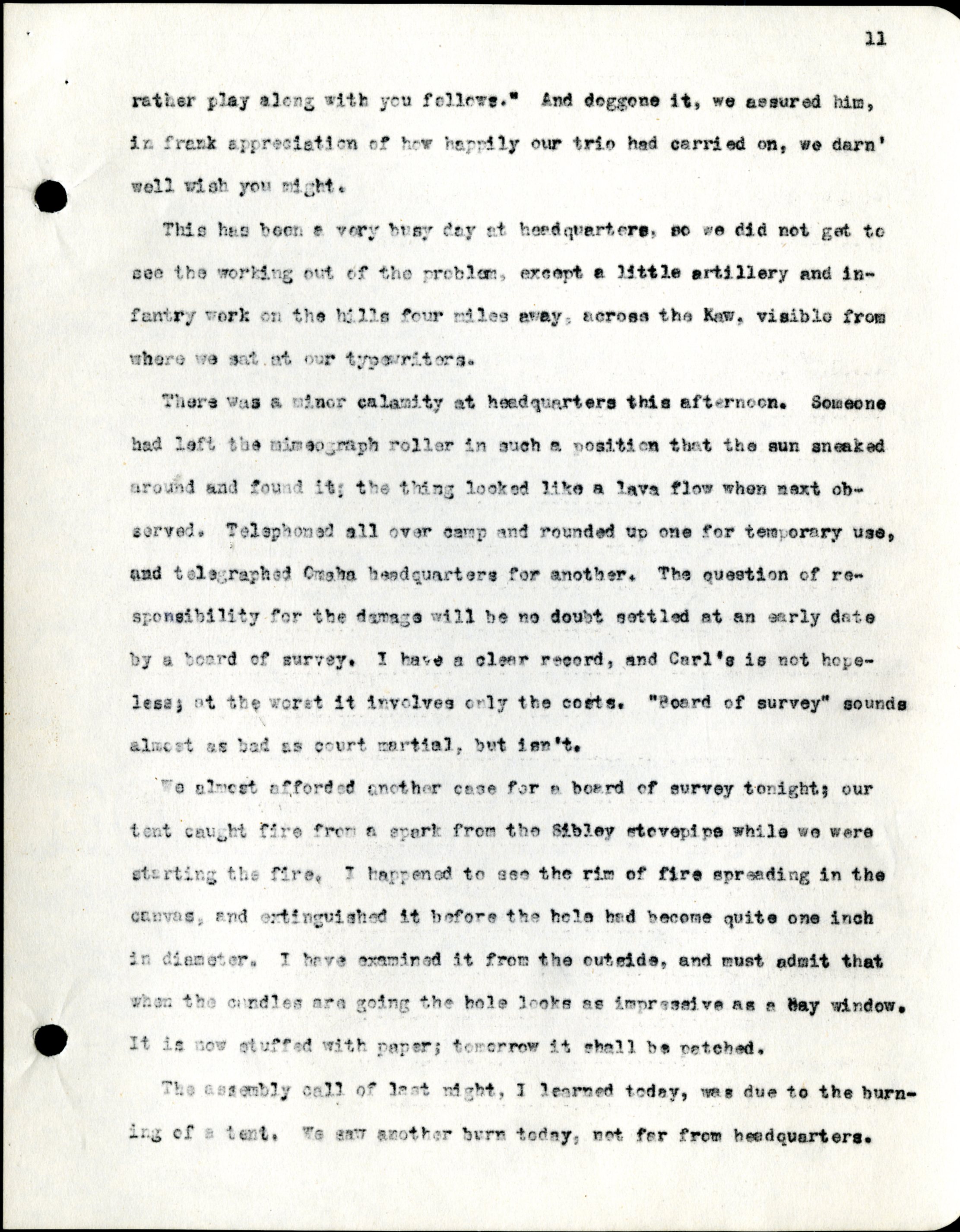 Frank H. Shoemaker typescript, 28 pages, titled "At Fort Riley, Kansas" on activities at Fort Riley between Oct. 12-29, 1903.