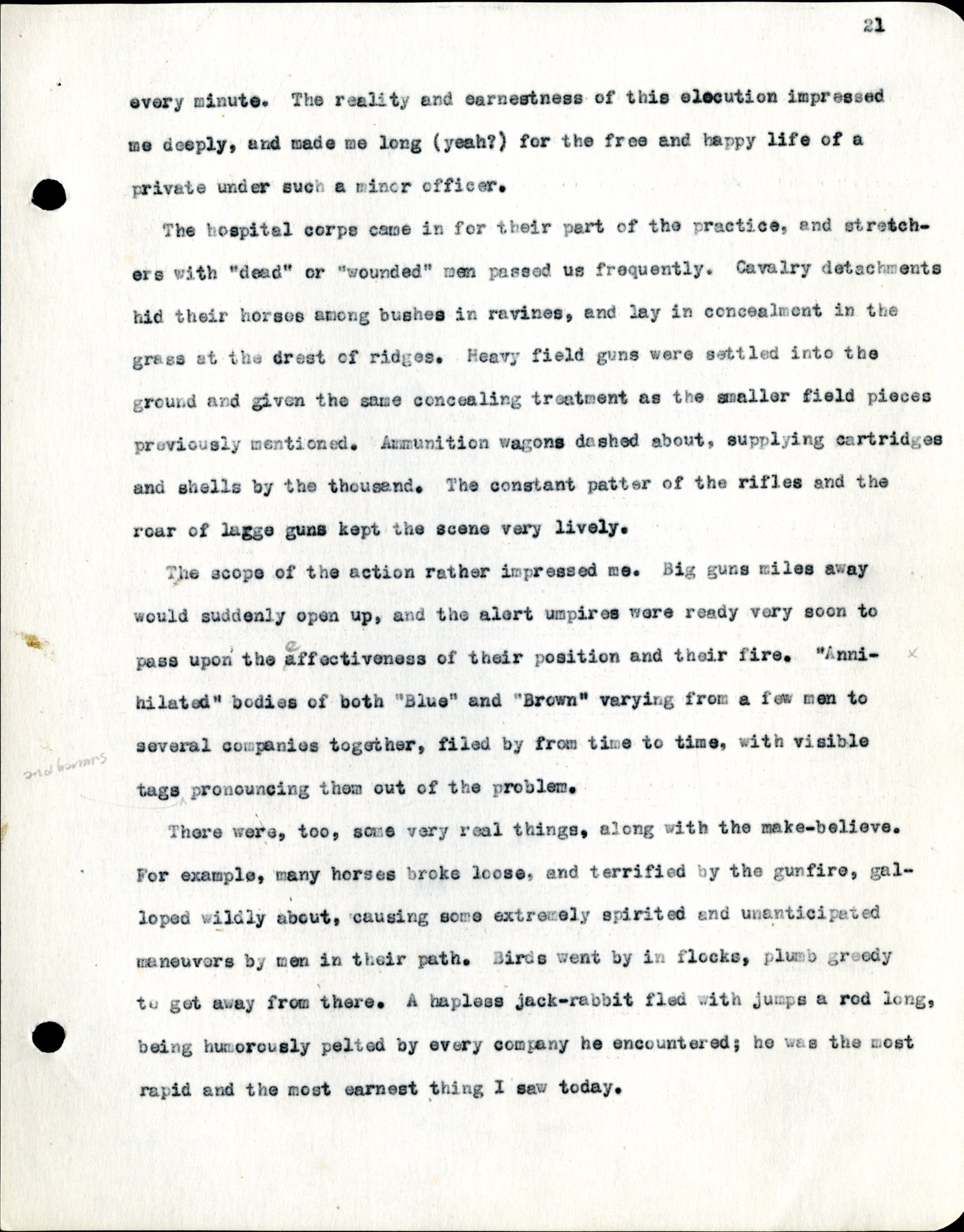 Frank H. Shoemaker typescript, 28 pages, titled "At Fort Riley, Kansas" on activities at Fort Riley between Oct. 12-29, 1903.