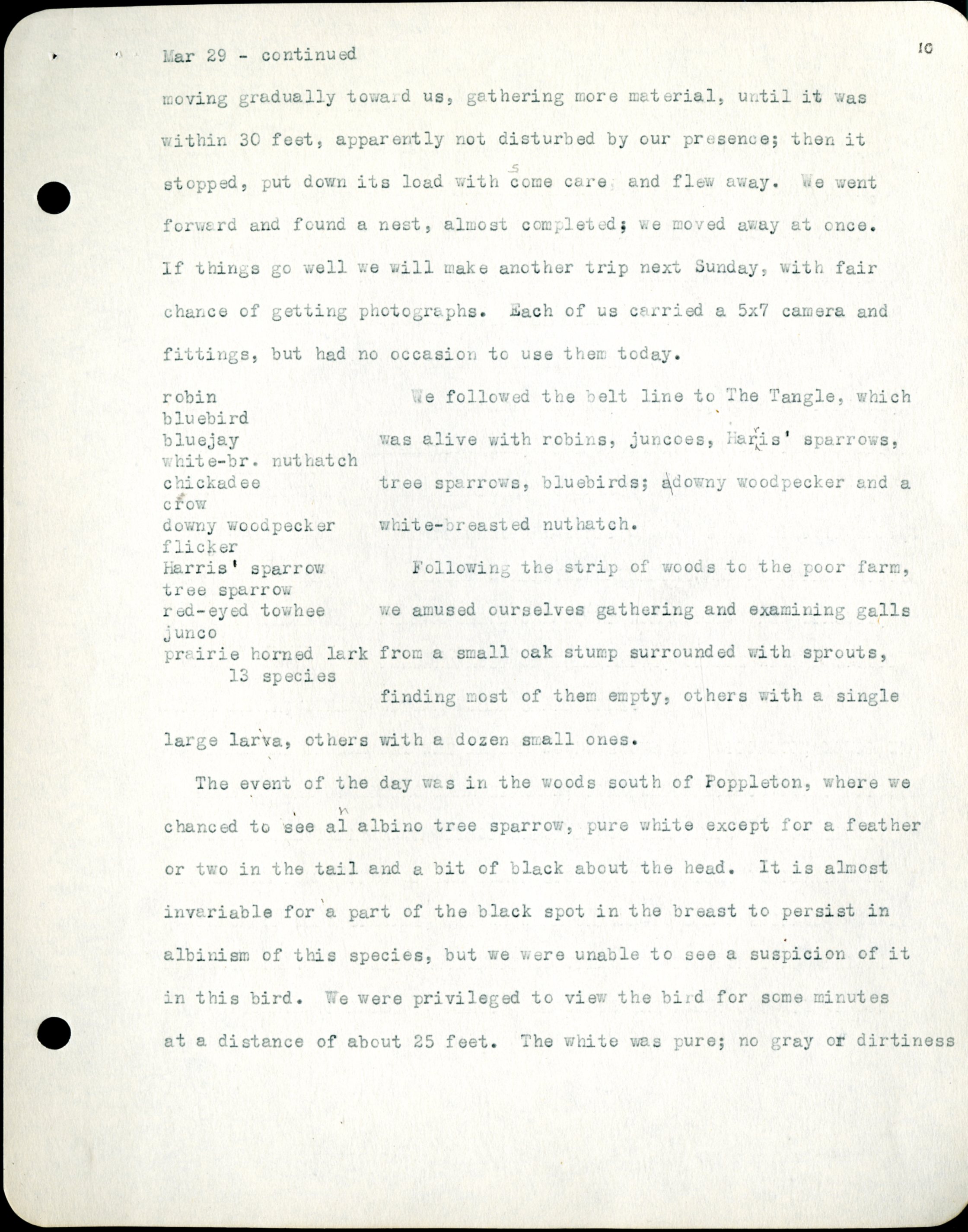 Frank H. Shoemaker typescript, 32 pages, detailing bird sightings, field trips, photography, and associated activities in Omaha, Nebraska.