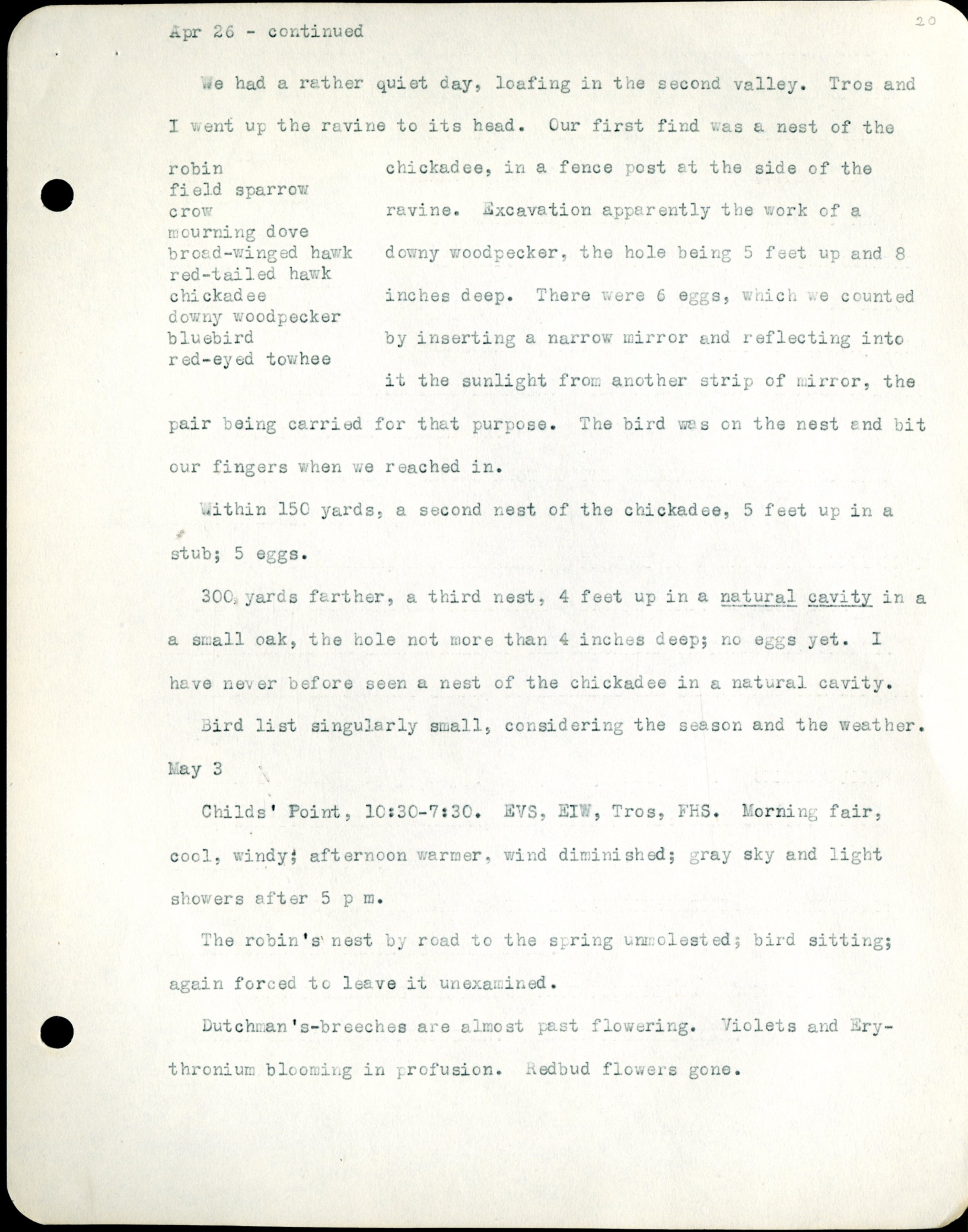 Frank H. Shoemaker typescript, 32 pages, detailing bird sightings, field trips, photography, and associated activities in Omaha, Nebraska.
