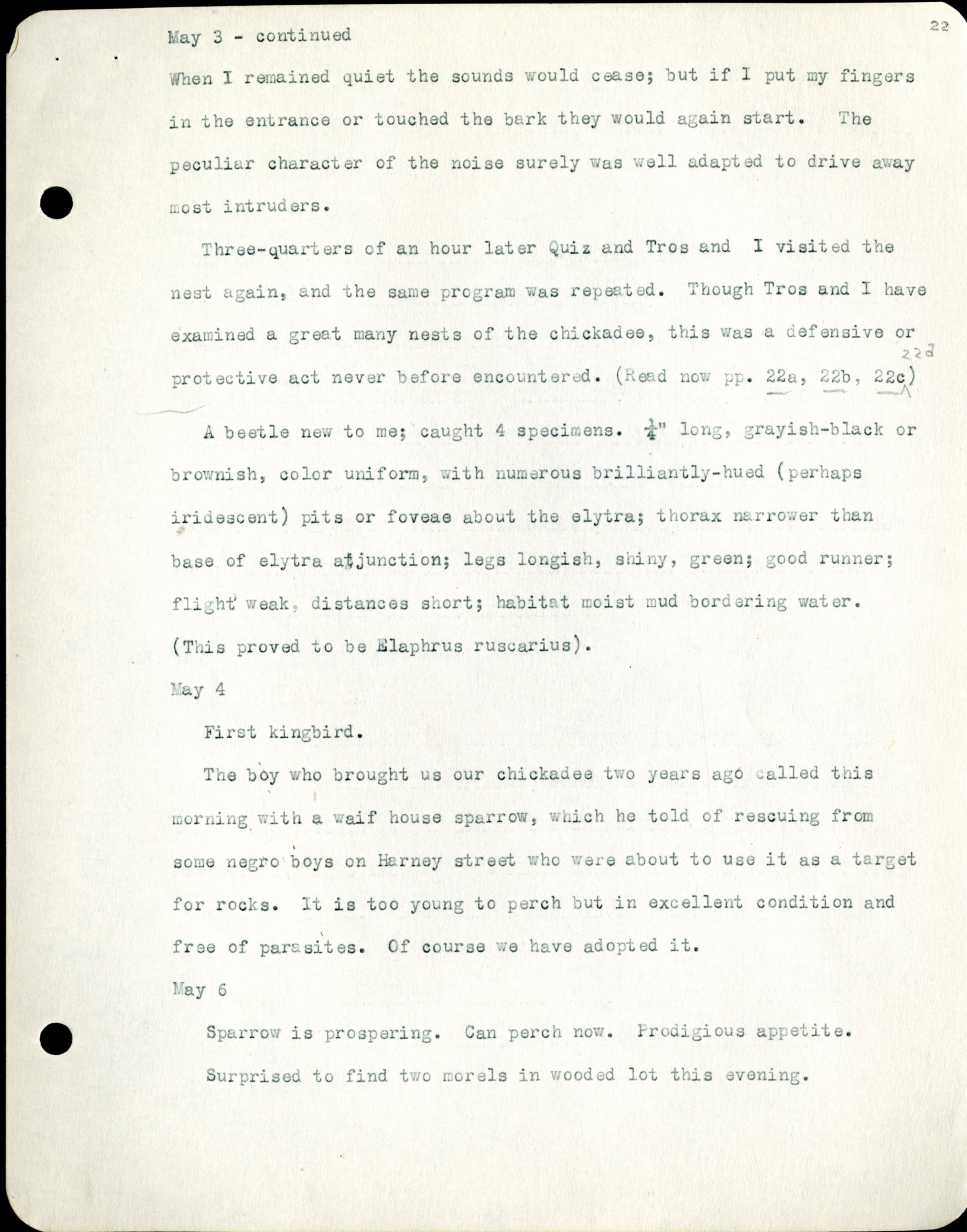 Frank H. Shoemaker typescript, 32 pages, detailing bird sightings, field trips, photography, and associated activities in Omaha, Nebraska.