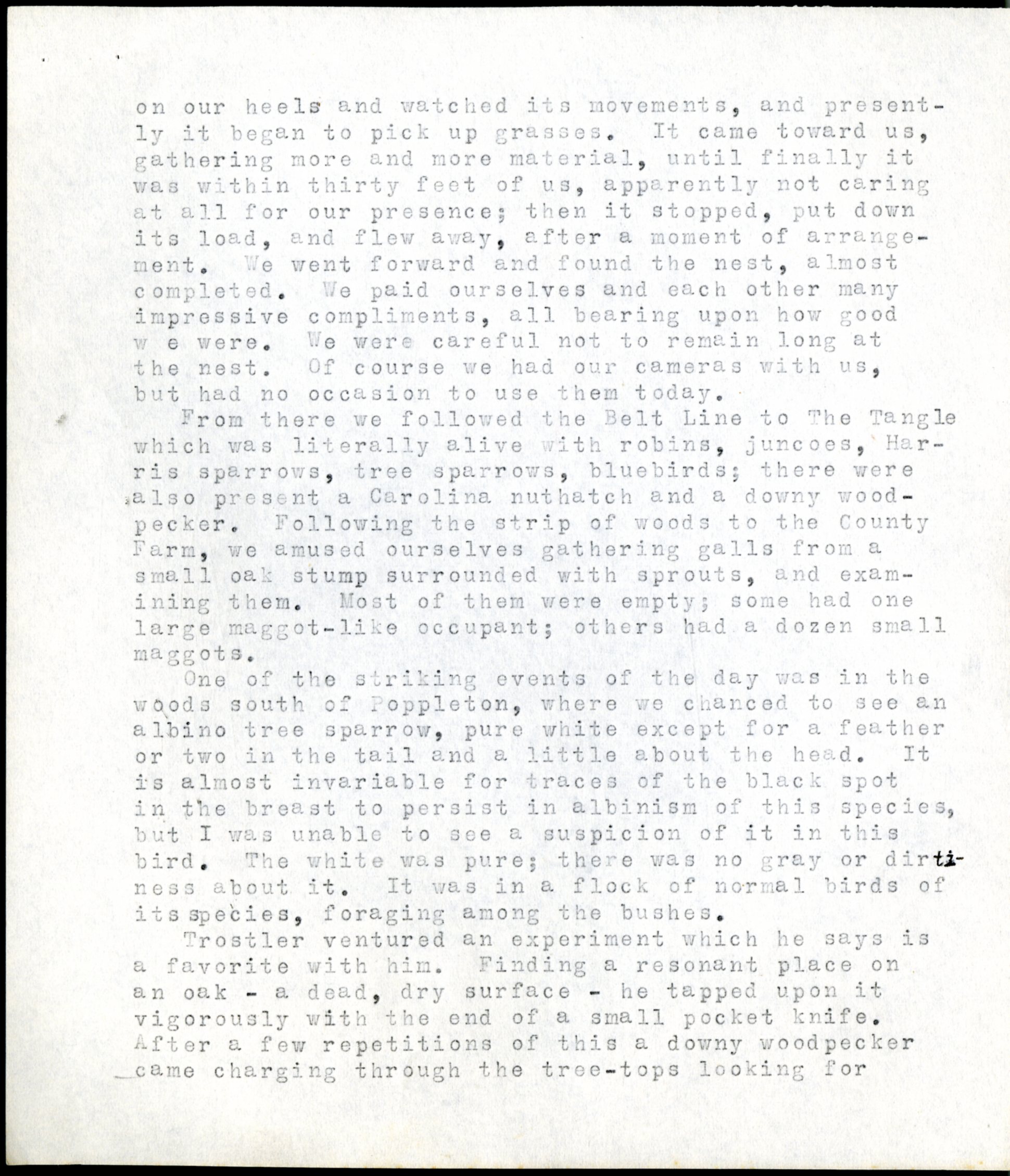Frank H. Shoemaker typescript, 20 pages, detailing bird sightings, field trips, photography, and associated activities in Omaha, Nebraska.