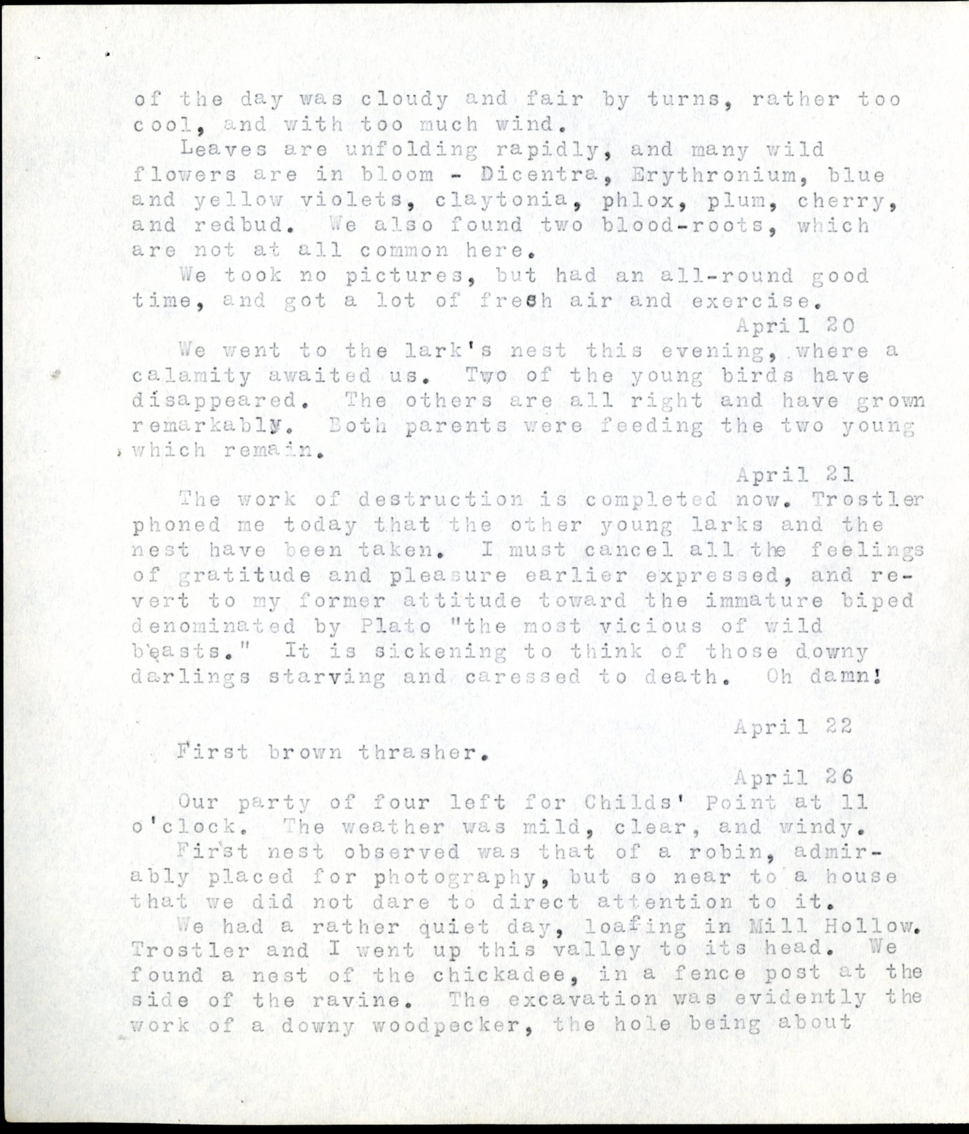 Frank H. Shoemaker typescript, 20 pages, detailing bird sightings, field trips, photography, and associated activities in Omaha, Nebraska.
