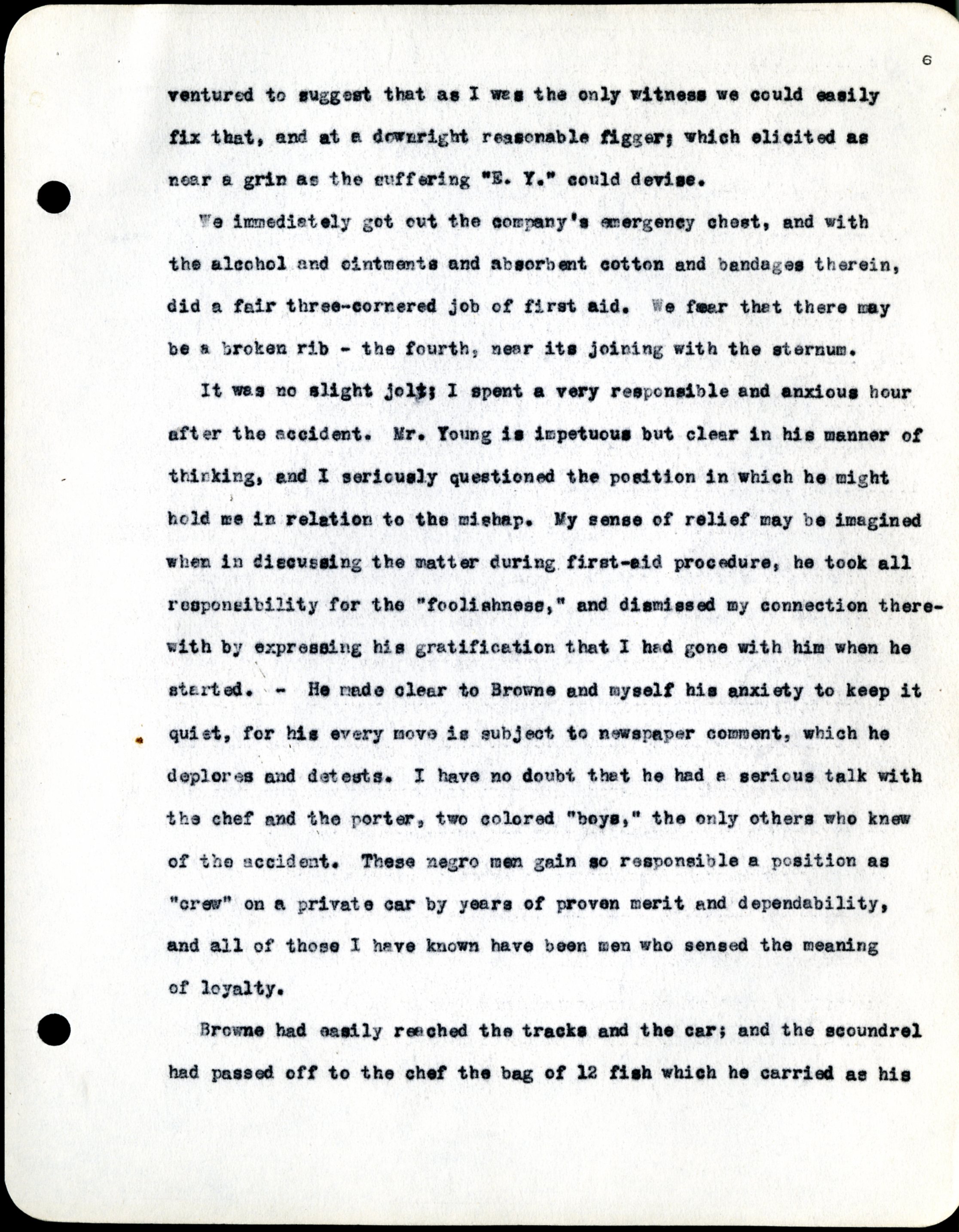 Frank H. Shoemaker typescript, 19 pages, noted on front page as "Have selected from my pocket day-dooks items pertaining to my leisure activities while on trips as private secretary to General Auditor of U.P.-S.P. and affiliates."