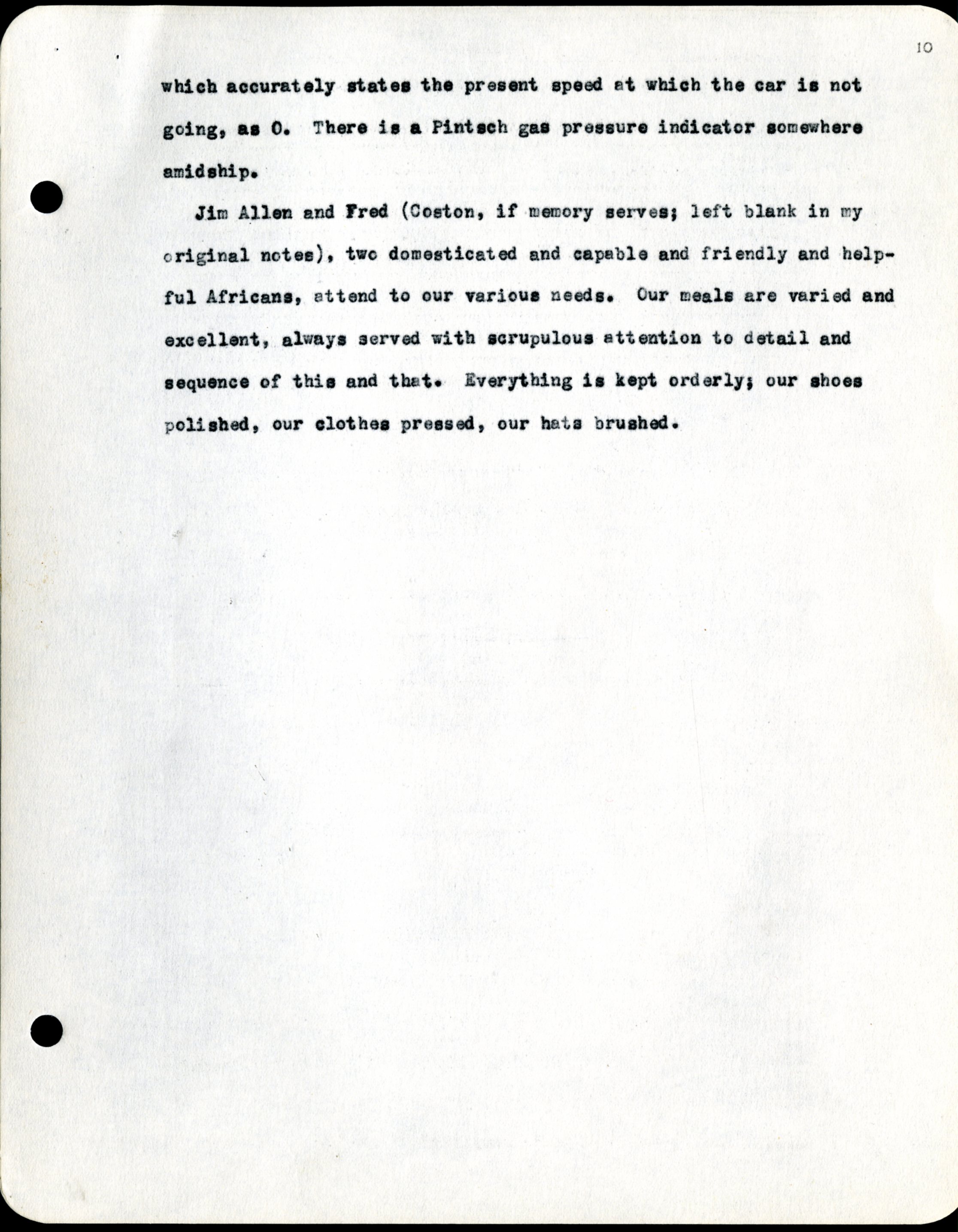 Frank H. Shoemaker typescript, 19 pages, noted on front page as "Have selected from my pocket day-dooks items pertaining to my leisure activities while on trips as private secretary to General Auditor of U.P.-S.P. and affiliates."