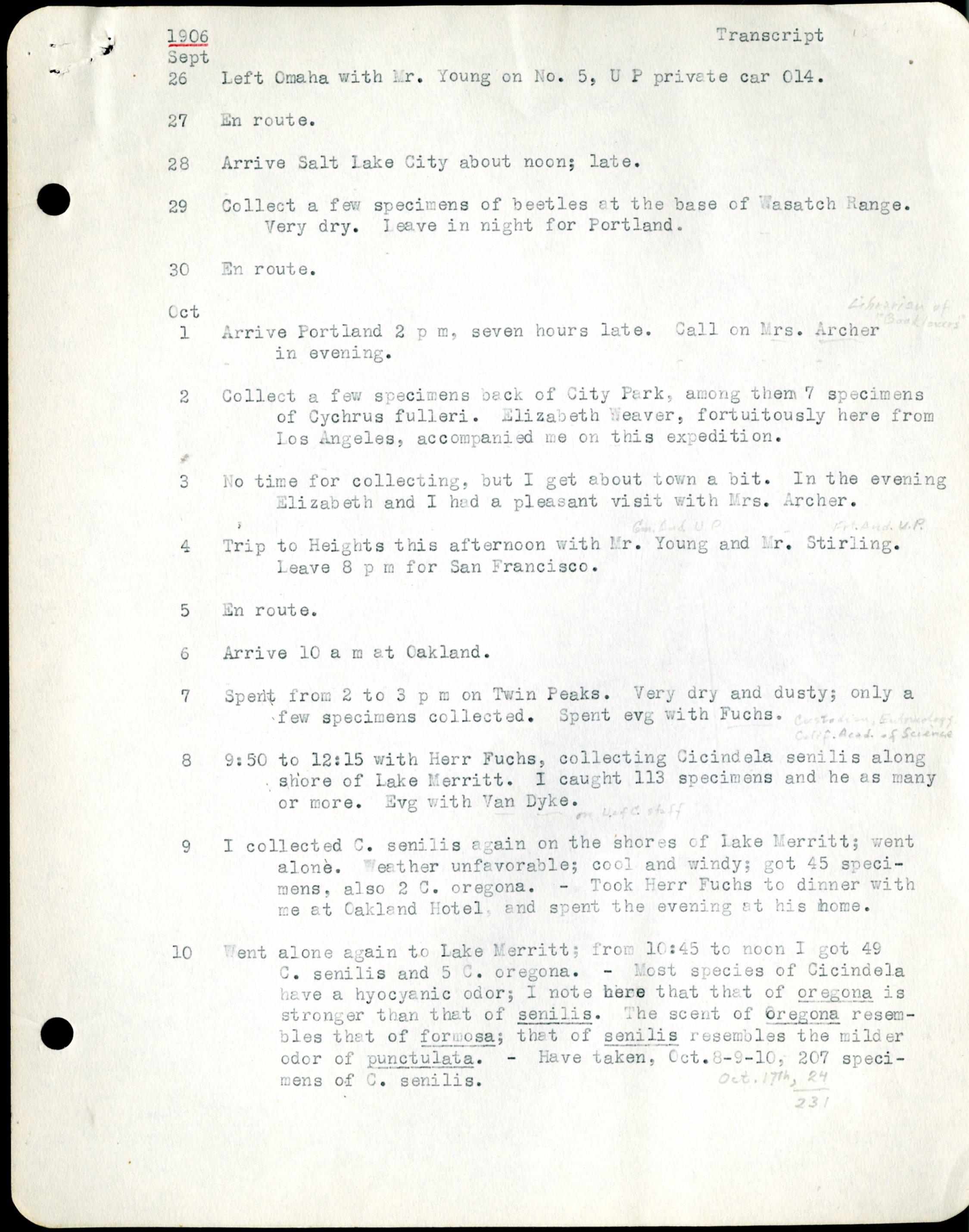 Frank H. Shoemaker, notes, 1906, Sept. 26-Oct. 27