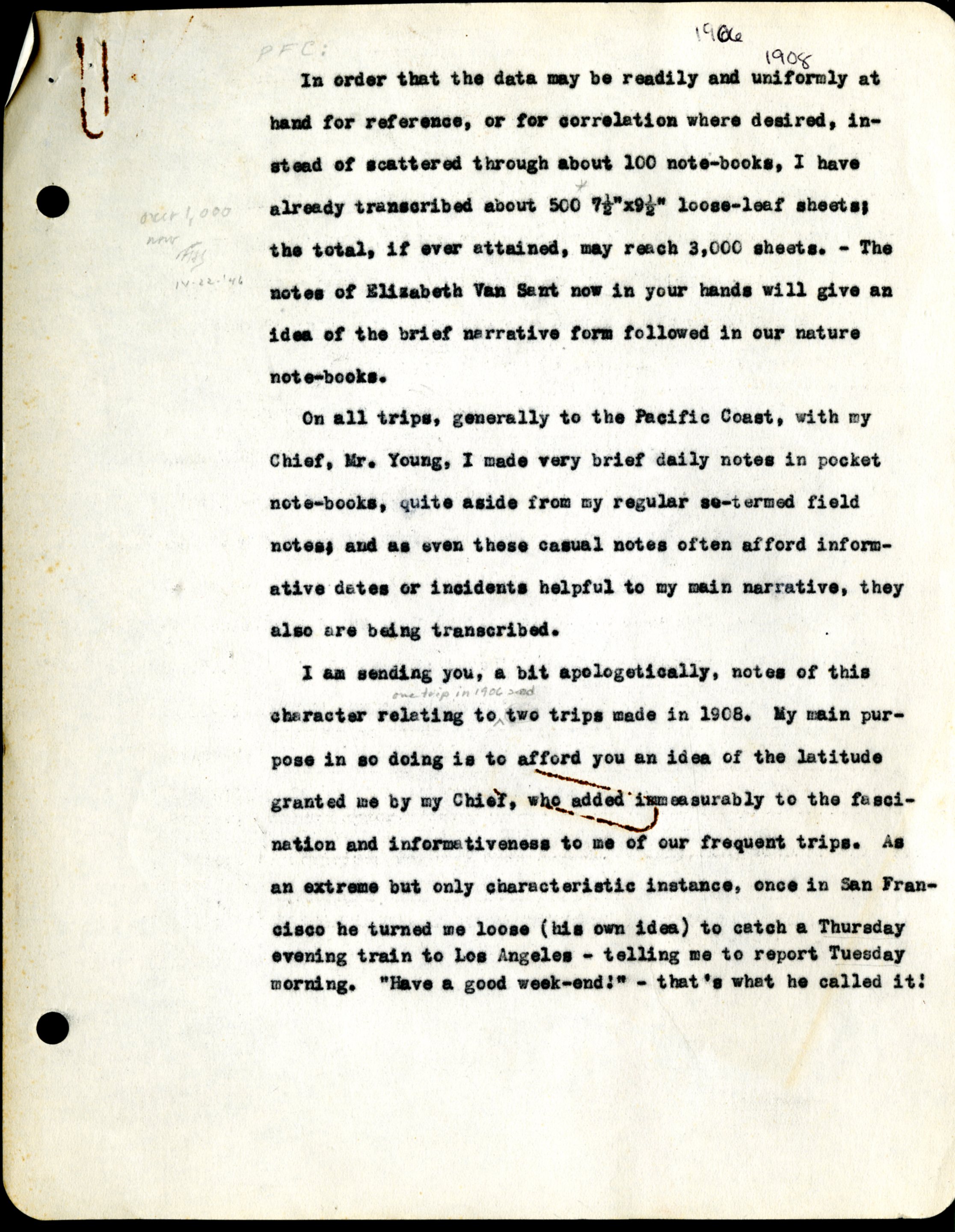 Frank H. Shoemaker, typescript, 1908, Aug. 26-Nov. 23