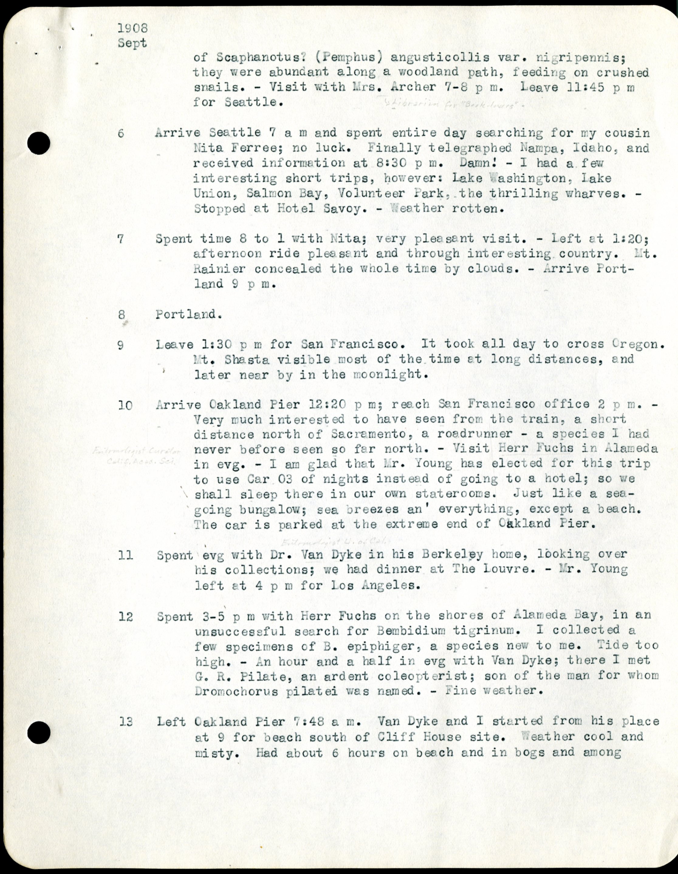Frank H. Shoemaker typescript, 12 pages, on collecting trips along the west coast and in Omaha and Lincoln, Nebraska, in Califorina, Idaho, Oregon, and Arizona.