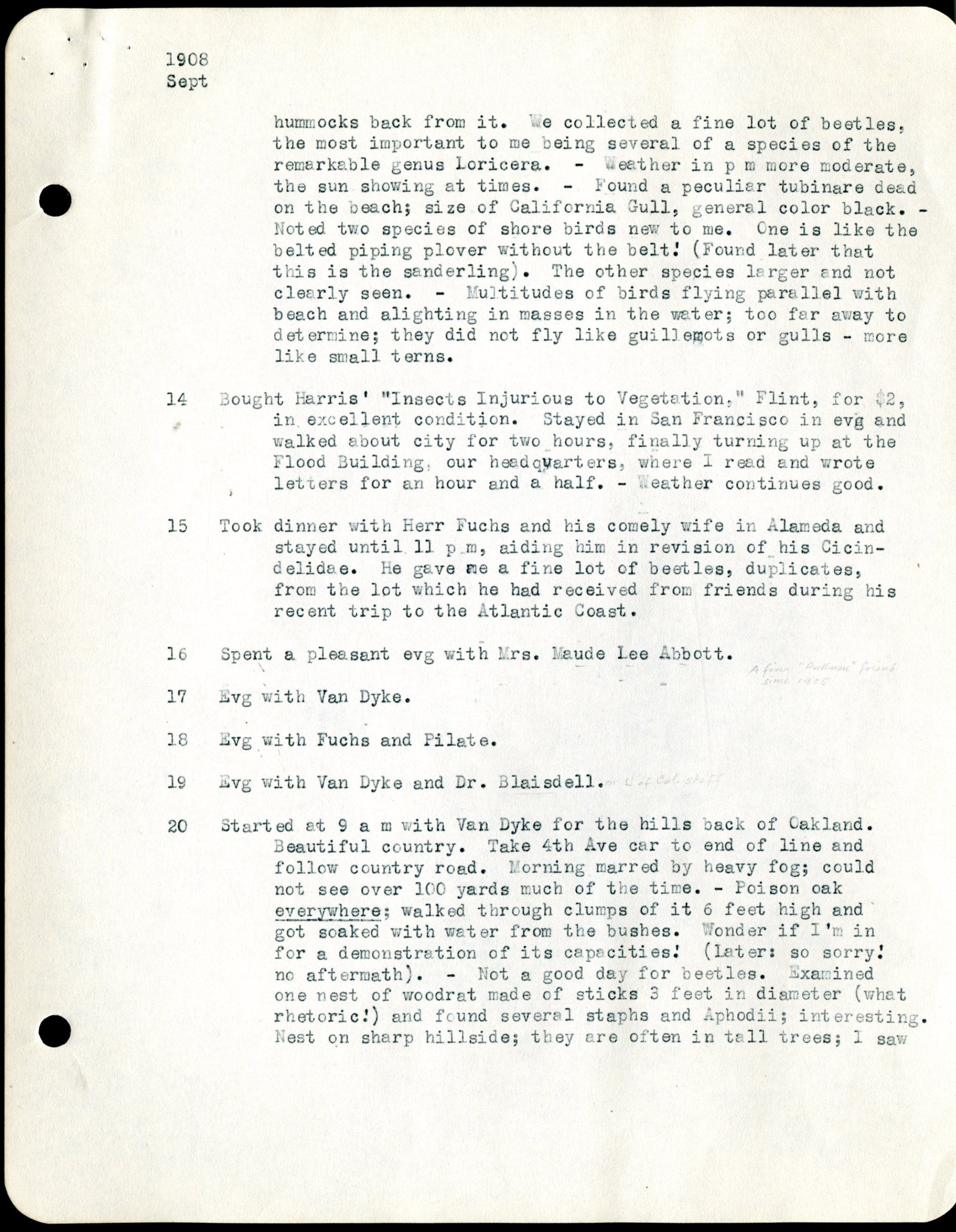 Frank H. Shoemaker, typescript, 1908, Aug. 26-Nov. 23